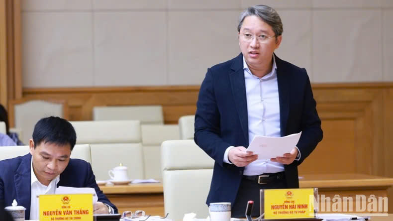 Bộ trưởng Tư pháp Nguyễn Hải Ninh phát biểu ý kiến tại Phiên họp. Ảnh: TRẦN HẢI