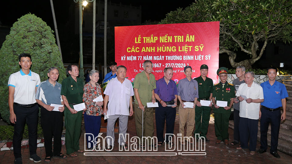 Nhân kỷ niệm 77 năm Ngày Thương binh - Liệt sĩ (27/7/1947 – 27/7/2024), tối 26/7, tại Nghĩa trang Liệt sĩ thành phố Nam Định, Thành Đoàn Nam Định phối hợp với Hội CCB, Ban Chỉ huy Quân sự thành phố Nam Định tổ chức Lễ thắp nến tri ân các Anh hùng Liệt sĩ. Đồng chí Nguyễn Anh Tuấn, Ủy viên Ban TVTU, Bí thư Thành ủy, Chủ tịch HĐND thành phố Nam Định; lãnh đạo Hội CCB tỉnh, Bộ CHQS tỉnh, Tỉnh Đoàn và hơn 1.000 đoàn viên, thanh niên, hội viên, lực lượng vũ trang thành phố tham dự.