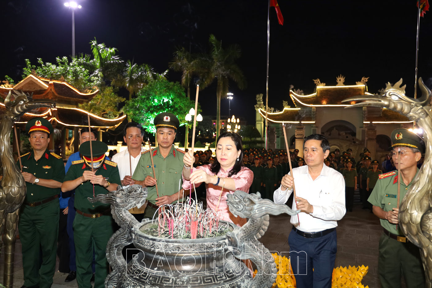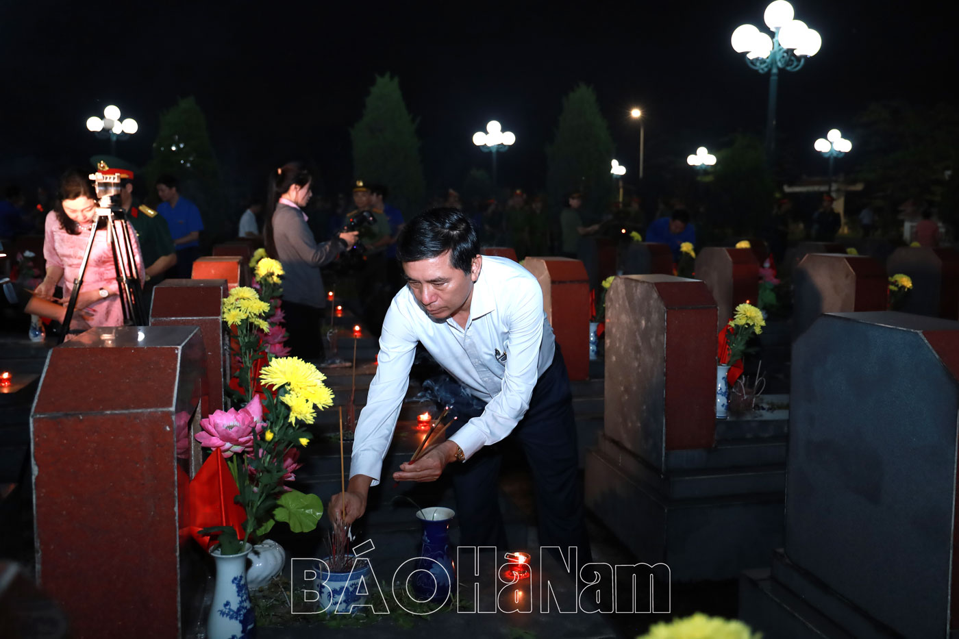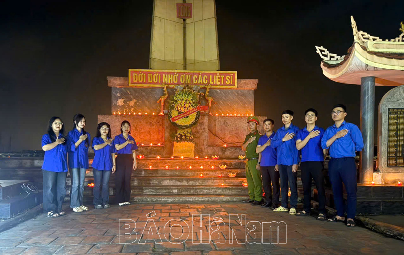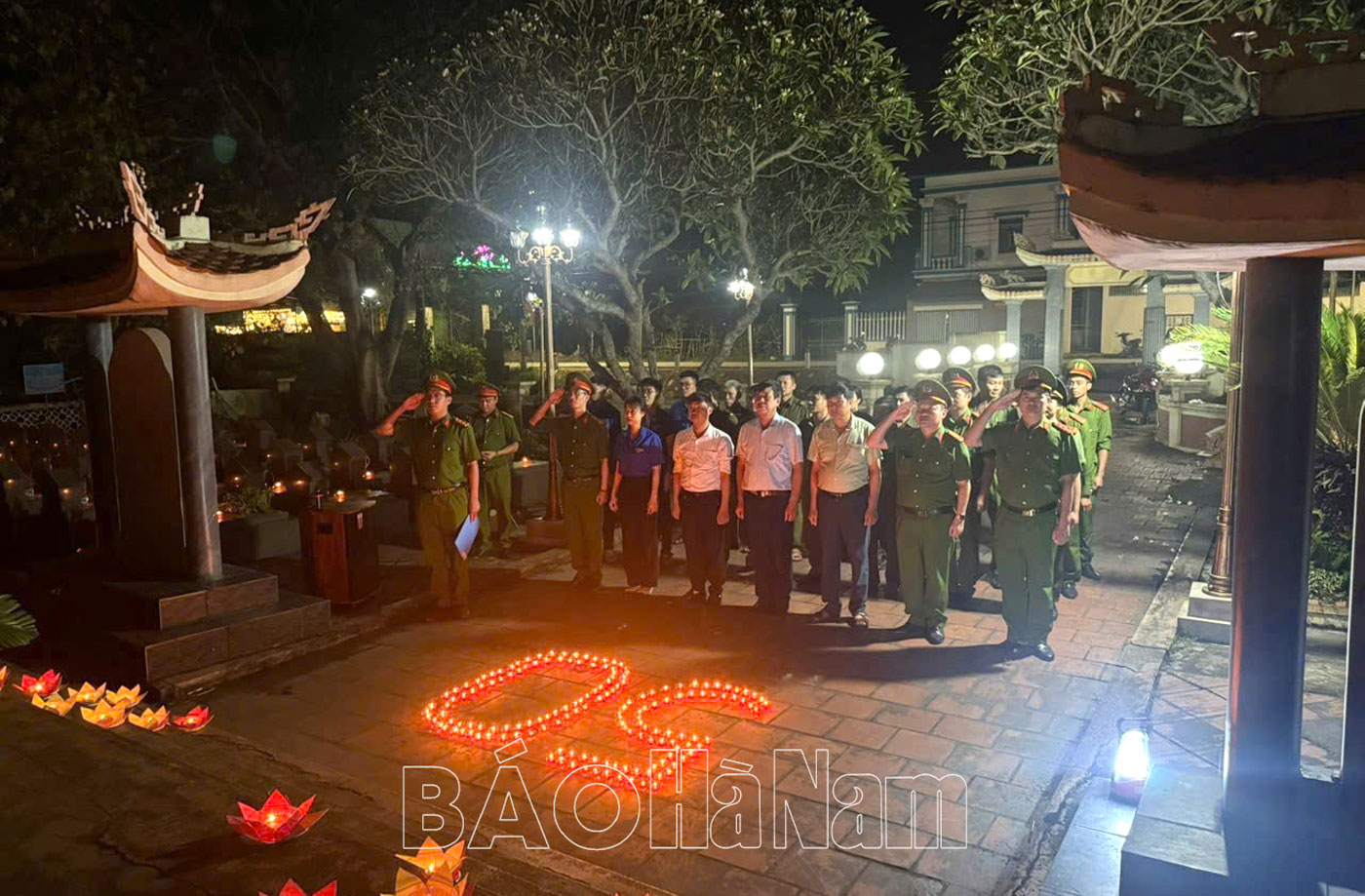 Tại buổi lễ, các đại biểu đã dâng hương tại Đền thờ 10 nữ Liệt sỹ dân quân Lam Hạ, Nhà tưởng niệm đồng chí Lương Khánh Thiện và thả đèn hoa đăng. Tiếp đó, đoàn đã đến dâng hương và thắp nến tri ân trên các phần mộ tại Nghĩa trang Liệt sỹ thành phố Phủ Lý.