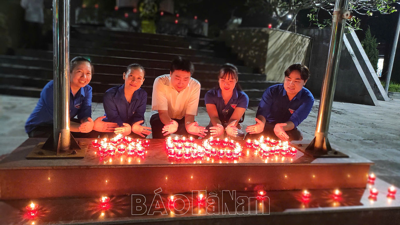 Đoàn viên thanh niên thắp nến tri ân các Anh hùng liệt sỹ.