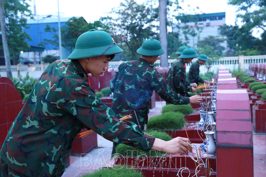 Đoàn viên thanh niên Bộ Chỉ huy Quân sự tỉnh thắp hương trên các phần mộ liệt sỹ.