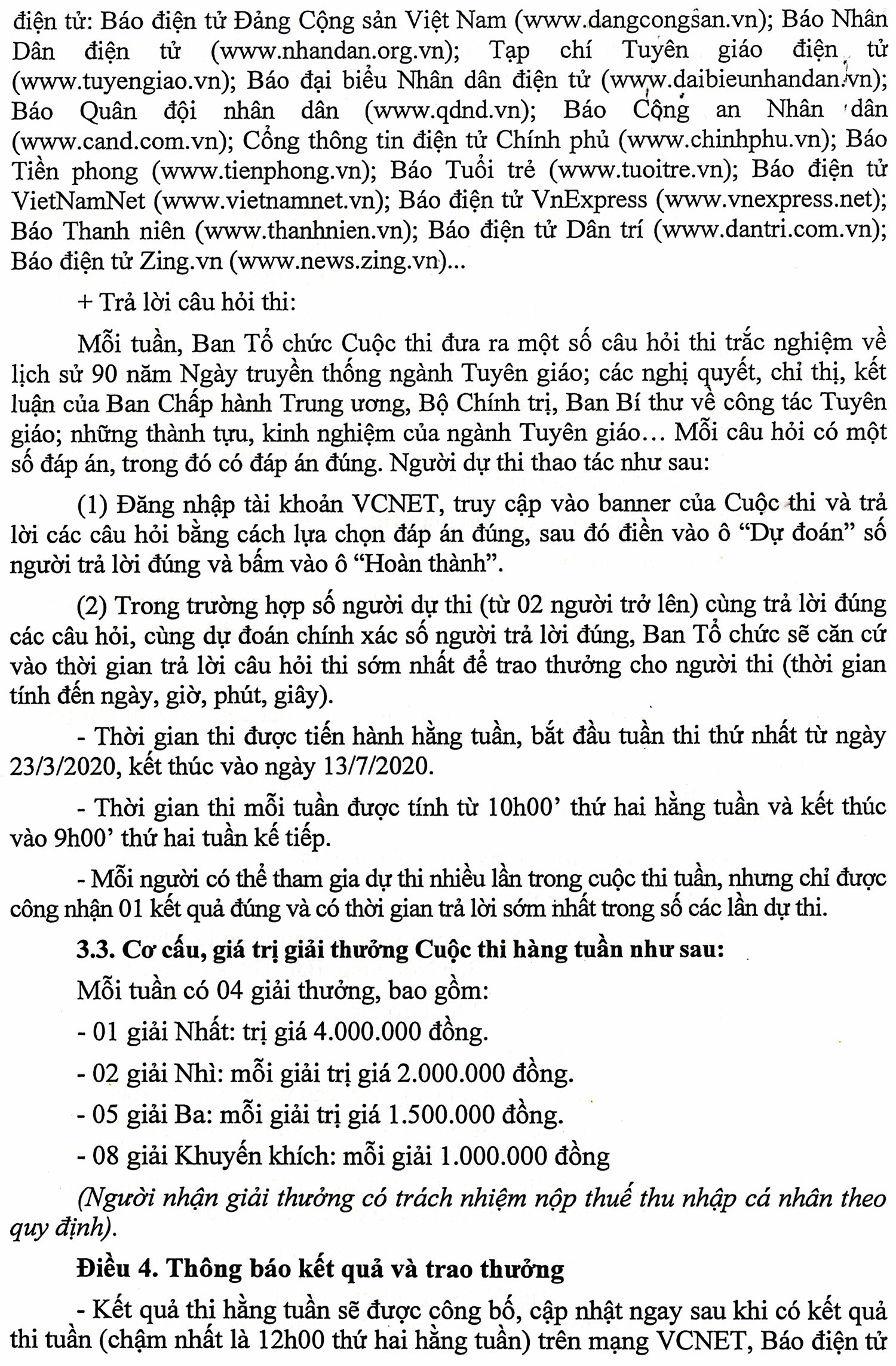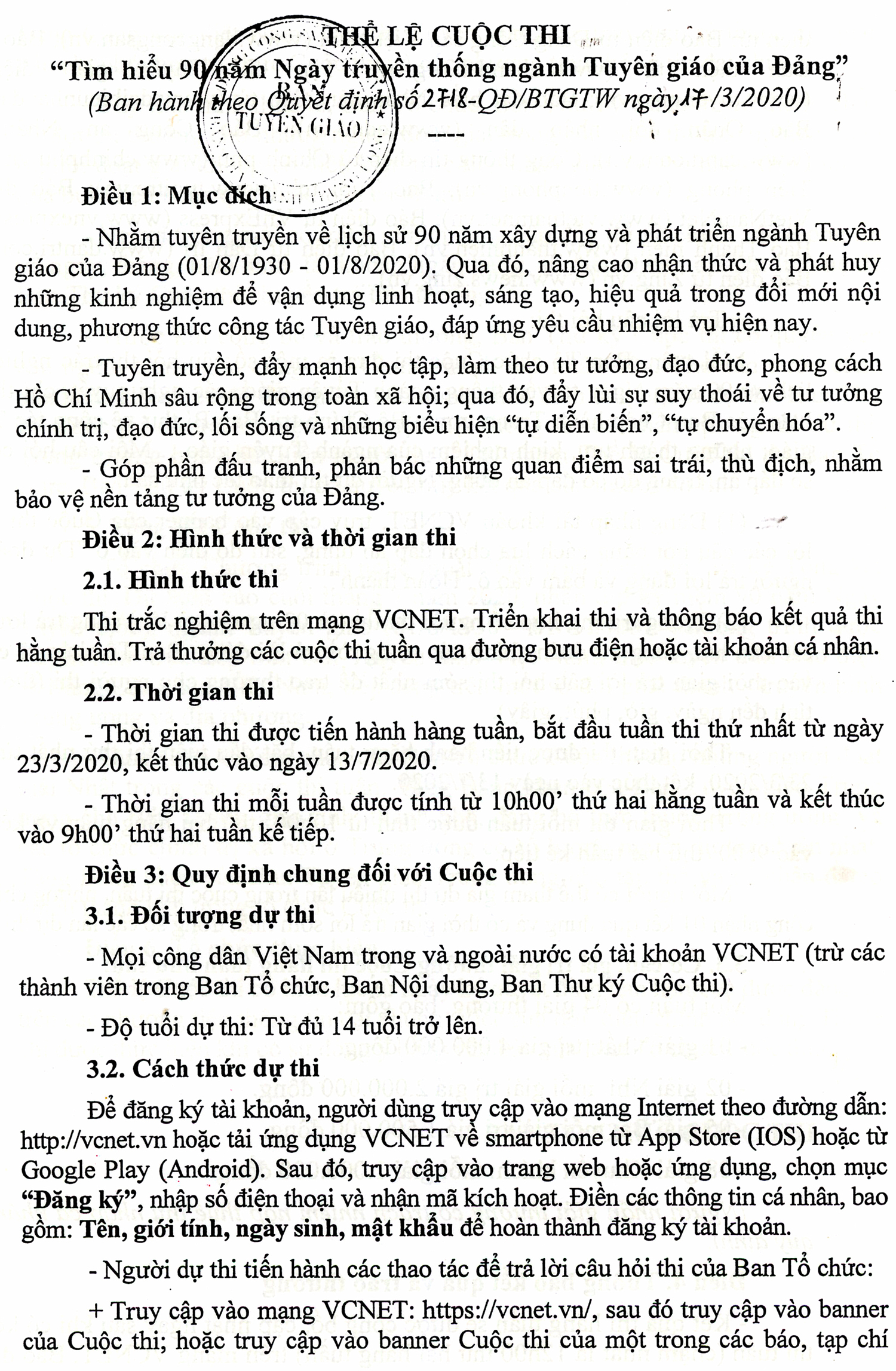 Thể lệ cuộc thi "Tìm hiểu 90 năm Ngày truyền thống ngành Tuyên giáo của Đảng"