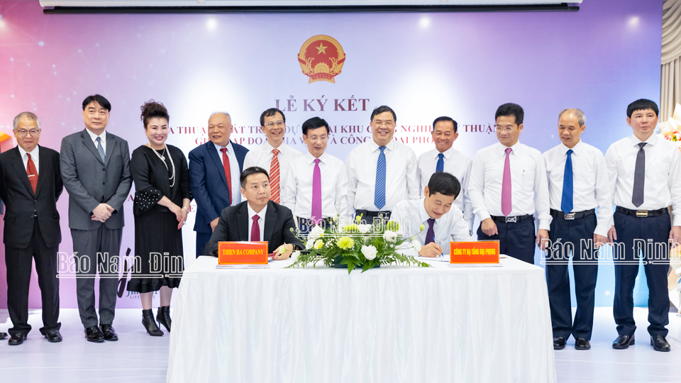 Phát biểu tại lễ ký kết, đồng chí Chủ tịch UBND tỉnh Phạm Đình Nghị nhấn mạnh: tỉnh Nam Định chào mừng JiaWei đã đến đầu tư tại địa phương. Thời gian qua, hoạt động tìm hiểu đầu tư, trao đổi thông tin, đàm phán giữa Tập đoàn JiaWei và Công ty Cổ phần xây dựng hạ tầng Đại Phong đã được các bên làm việc rất tích cực, cụ thể trên cơ sở thiện chí với sự chỉ đạo sát sao và tạo điều kiện tối đa của lãnh đạo tỉnh. Đến nay việc đàm phán đã đạt được sự thống nhất cao giữa các bên để tiến hành ký kết thỏa thuận phát triển dự án. Tỉnh Nam Định cam kết với các nhà đầu tư sẽ tạo mọi điều kiện thuận lợi nhất, đồng hành cùng nhà đầu tư trong việc giải quyết những khó khăn, vướng mắc liên quan đến thủ tục pháp lý trong quá trình nhà đầu tư triển khai xây dựng, khai thác và vận hành dự án thông qua cơ quan đầu mối là Ban Quản lý các Khu công nghiệp tỉnh. Yêu cầu Ban Quản lý các Khu công nghiệp tỉnh, các sở, ngành của tỉnh tập trung hỗ trợ tối đa cho Tập đoàn JiaWei và Công ty Cổ phần xây dựng hạ tầng Đại Phong hoàn thiện các thủ tục về đất đai, đầu tư, xây dựng, môi trường,... với phương châm "thành công của nhà đầu tư góp phần vào thành công chung của tỉnh".