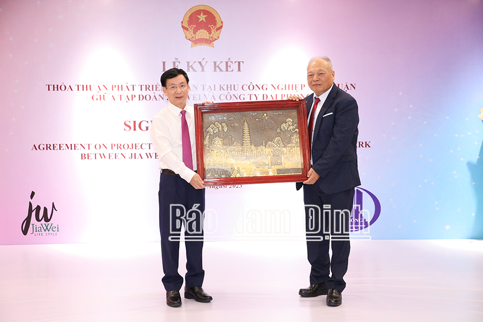 Về phía Tập đoàn JiaWei (Đài Loan) tham dự lễ ký kết có ông Hoàng Thanh Sâm, Chủ tịch Hội đồng quản trị; bà Ngô Lệ Hoa, Tổng Giám đốc và đại diện Công ty Thiên Hà (Công ty phụ trợ cho Dự án của Tập đoàn JiaWei tại Nam Định).
