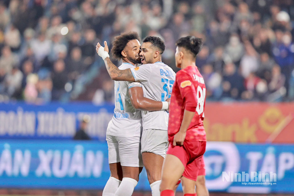 Với thực lực hơn hẳn, các cầu thủ Nam Định thi đấu tự tin, liên tục tấn công đội khách.