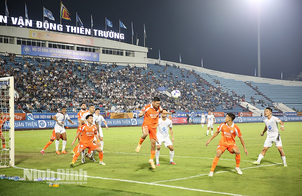 Sang hiệp 2, CLB Thép Xanh Nam Định tiếp tục dồn lực tấn công nhằm tìm bàn gỡ. Dù tạo được nhiều sức ép, các pha phối hợp của đội chủ nhà vẫn thiếu đột biến. Đình Sơn và Romulo thử vận may bằng những cú sút xa nhưng bóng đều đi chệch khung thành thủ môn Văn Biểu. Sự bế tắc khiến khán giả sân Thiên Trường không khỏi sốt ruột.