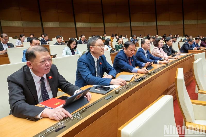 Quốc hội biểu quyết thông qua Nghị quyết về một số cơ chế, chính sách đặc thù thực hiện các chương trình mục tiêu quốc gia tại Kỳ họp bất thường lần thứ 5, Quốc hội khóa XV, ngày 18/1/2024.