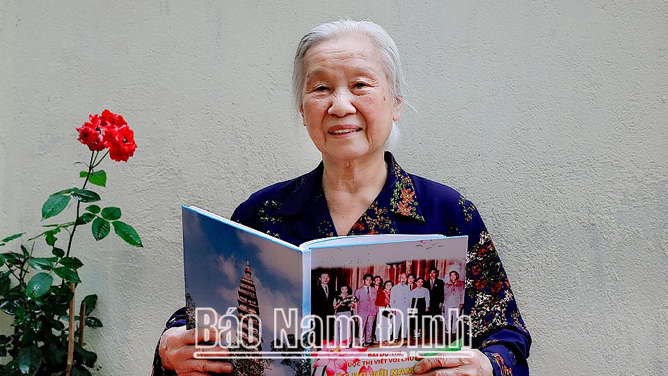 | Đảng viên Vũ Thị Bích Liên, phường Trần Đăng Ninh (thành phố Nam Định), Huy hiệu 60 năm tuổi Đảng, người vinh dự 2 lần được gặp Bác Hồ. |