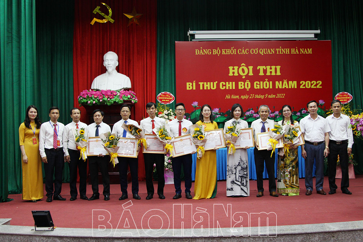 Kết thúc hội thi ban tổ chức đã trao giải Nhất cho thí sinh: Nguyễn Thế Vĩnh, Bí thư Chi bộ Xây dựng Đảng- Nội chính, Đảng bộ Báo Hà Nam; giải Nhì cho thí sinh: Nguyễn Thị Thu Hiền, Bí thư Chi bộ Phòng Tổ chức cán bộ, Đảng bộ Viện Kiểm sát Nhân dân tỉnh; giải Ba cho các thí sinh: Nguyễn Văn Tình, Bí thư Chi bộ 5, Đảng bộ Sở Tư pháp; Phạm Văn Quý, Bí thư Chi bộ Trung tâm lưu trữ, Đảng bộ Sở Nội vụ; Cù Thị Hương, Bí thư Chi bộ Phòng Quản lý công nghiệp, Đảng bộ Sở Công thương; Đỗ Văn Hiến, Bí thư Chi bộ Bảo tàng tỉnh, Đảng bộ Sở Văn hóa, Thể thao và Du lịch và giải Khuyến khích cho các thí sinh: Tạ Anh Tuấn, Bí thư Chi bộ Phòng Kế hoạch- tổng hợp, kỹ thuật, thẩm định, Đảng bộ Ban Quản lý dự án đầu tư xây dựng tỉnh Hà Nam; Hoàng Thị Thúy Chinh, Bí thư Chi bộ Ban Tuyên giáo, Nữ công- Chính sách pháp luật và Quan hệ lao động, Đảng bộ Liên đoàn Lao động tỉnh.