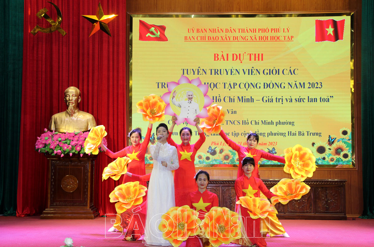 Sáng 21/4, UBND thành phố Phủ Lý tổ chức vòng chung khảo hội thi Tuyên truyền viên giỏi các Trung tâm học tập cộng đồng năm 2023. Thí sinh Lại Thị Cẩm Vân, tuyên truyền viên Trung tâm học tập cộng đồng phường Hai Bà Trưng đã xuất sắc giành giải Nhất hội thi với bài giới thiệu tác phẩm “Nhân cách đạo đức Hồ Chí Minh – Giá trị và sức lan tỏa”.