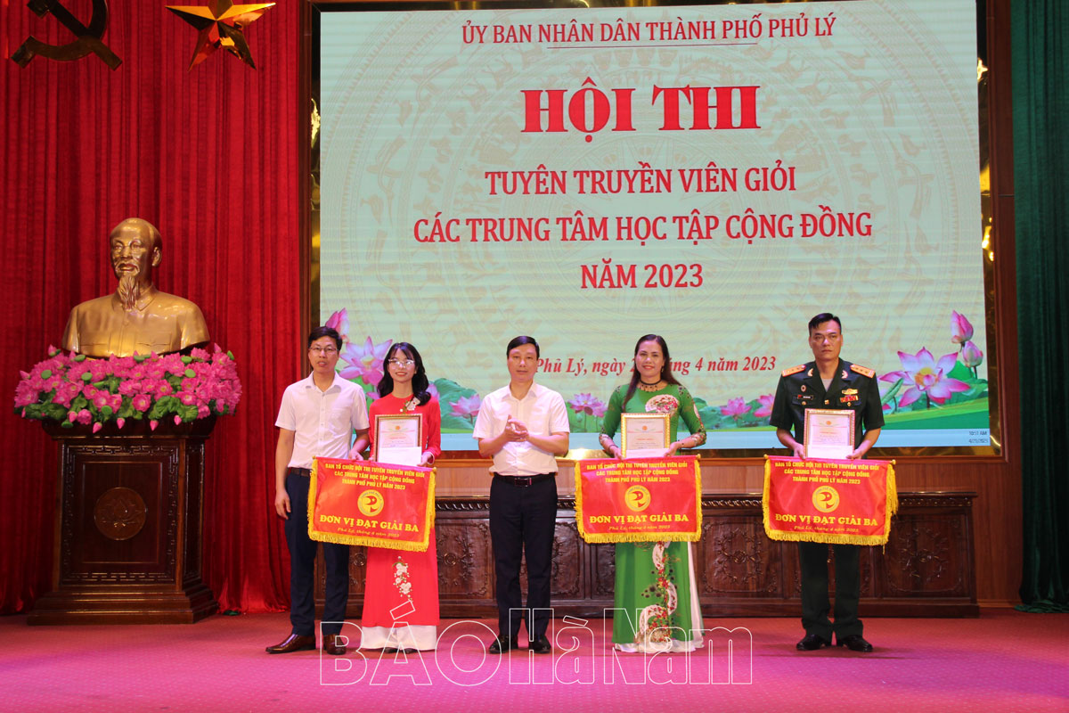 Kết thúc hội thi Ban Tổ chức đã trao giải Nhất cho tuyên truyền viên của Trung tâm học tập cộng đồng phường Hai Bà Trưng; 2 giải Nhì cho tuyên truyền viên của trung tâm học tập cộng đồng phường Thanh Châu và xã Liêm Tuyền; 3 giải Ba cho tuyên truyền viên của trung tâm học tập cộng đồng phường Liêm Chính, Lê Hồng Phong và Châu Sơn; 8 giải Khuyến khích và 1 giải Triển vọng cho các thí sinh tham gia hội thi.