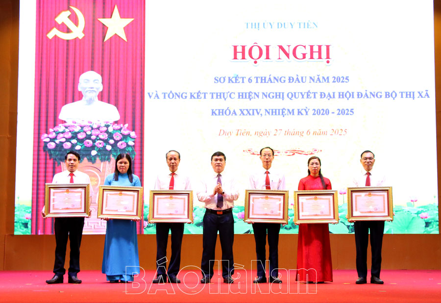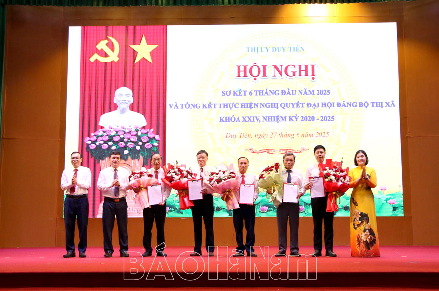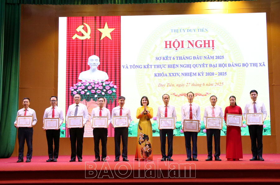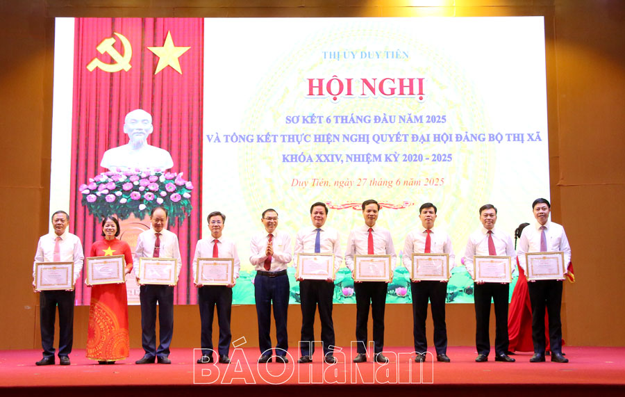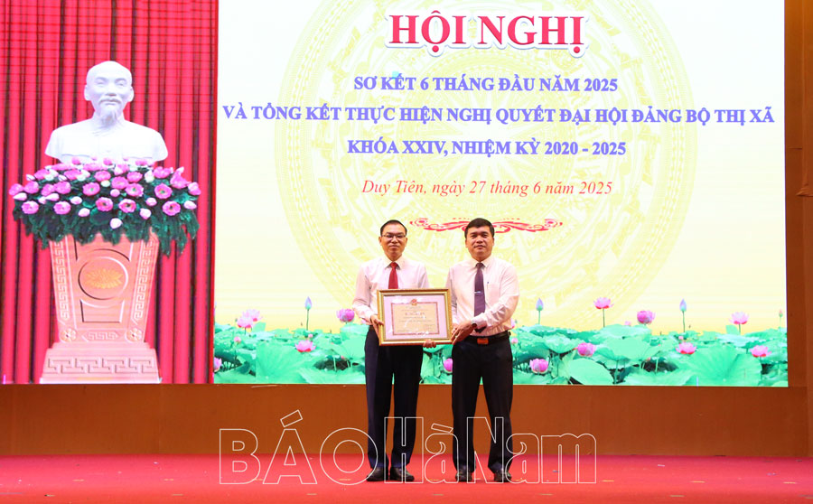 Sáng 27/6, Thị ủy Duy Tiên tổ chức sơ kết công tác 6 tháng đầu năm 2025 và tổng kết thực hiện Nghị quyết Đại hội Đảng bộ thị xã khóa XXIV nhiệm kỳ 2020-2025. Dự hội nghị có đồng chí Nguyễn Văn Lượng, Ủy viên Ban Thường vụ Tỉnh ủy, Bí thư Thị ủy Duy Tiên; đại diện lãnh đạo Ban Nội chính Tỉnh ủy, Ban Tuyên giáo và Dân vận Tỉnh ủy; các đồng chí Ủy viên Ban Thường vụ (BTV) Thị ủy, Ủy viên Ban Chấp hành (BCH) Đảng bộ thị xã Duy Tiên.