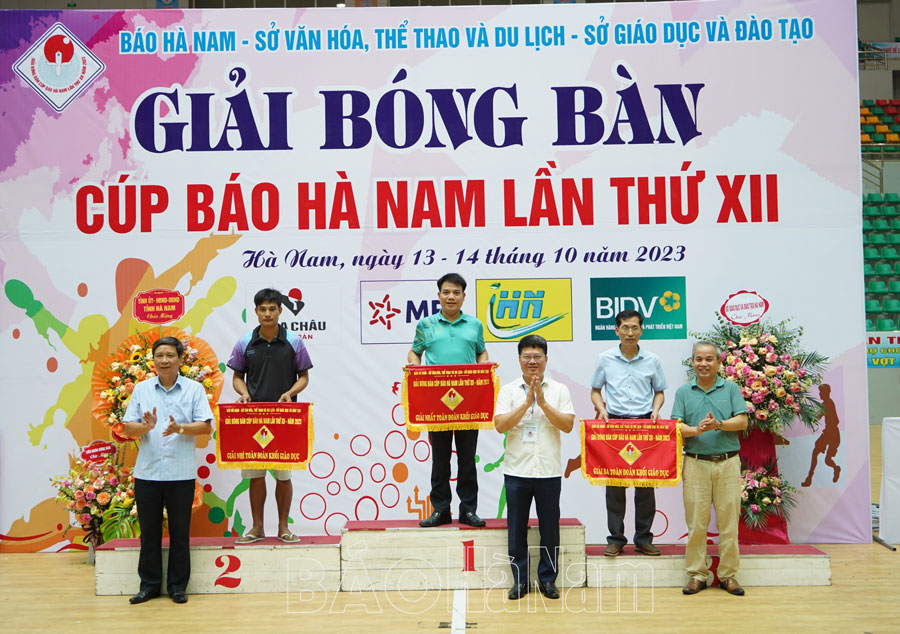 Chiều ngày 14/10, Ban Tổ chức Giải Bóng bàn Cúp Báo Hà Nam đã tổ chức Lễ bế mạc, trao huy chương, phần thưởng, Cúp và Cờ giải Nhất, Nhì, Ba toàn đoàn cho các đơn vị đạt thành tích cao sau 2 ngày thi đấu tại giải.