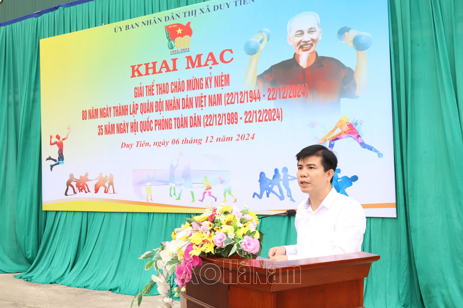 Chiều 6/12, thị xã Duy Tiên tổ chức khai mạc giải thể thao chào mừng kỷ niệm 80 năm Ngày thành lập Quân đội nhân dân Việt Nam (22/12/1944-22/12/2024) và 35 năm Ngày hội Quốc phòng toàn dân (22/12/1989-22/12/2024).