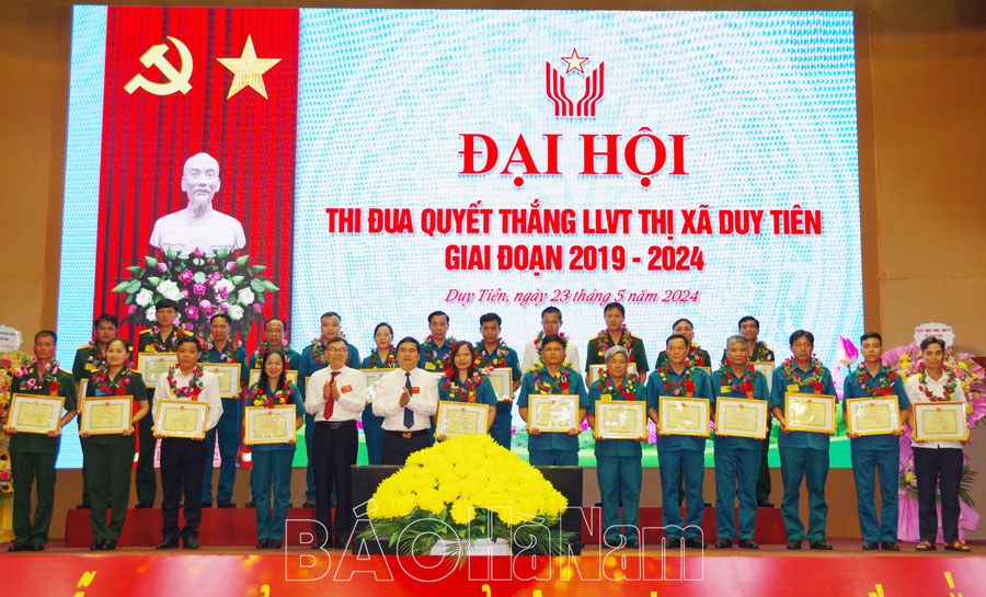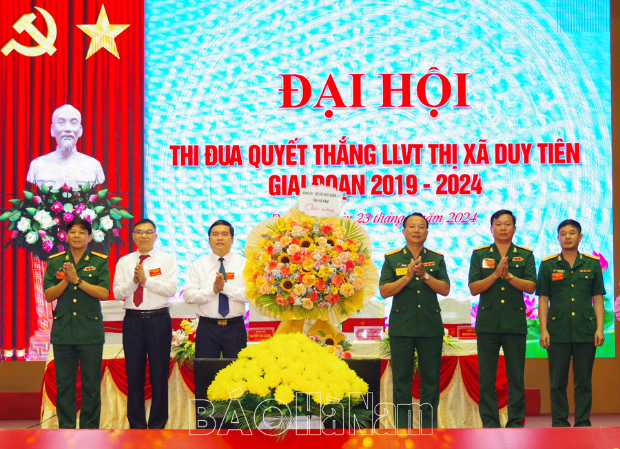 Chiều 23/5, thị xã Duy Tiên tổ chức Đại hội thi đua Quyết thắng (TĐQT) trong lực lượng vũ trang (LLVT) thị xã giai đoạn 2019-2024. Dự đại hội có Đại tá Đặng Văn Hoà, Phó Chính uỷ Bộ CHQS tỉnh; lãnh đạo Sở Nội vụ; thị xã Duy Tiên; các phường, xã, thị trấn trên địa bàn cùng các cán bộ, chiến sĩ LLVT thị xã.