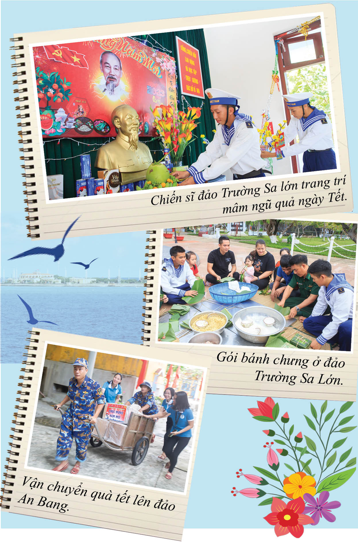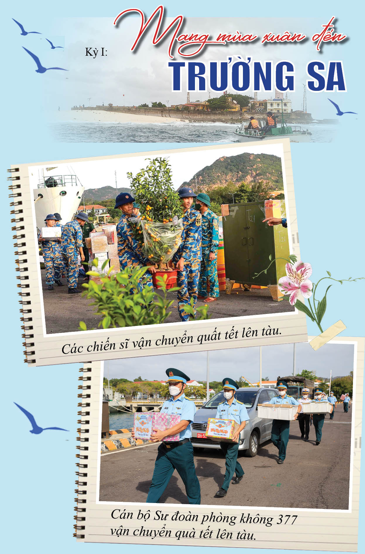 Quân cảng Cam Ranh (tỉnh Khánh Hòa) những ngày giáp Tết Quý Mão rộn ràng như ngày hội. Từng dòng người đổ về tham dự buổi lễ tiễn tàu, tặng quà Tết cho quân và dân huyện đảo Trường Sa do Bộ Tư lệnh Vùng 4 Hải quân tổ chức. Các loại thực phẩm tươi sống, những chậu quất được cán bộ, chiến sĩ cẩn thận vận chuyển lên tàu. Những năm qua, hoạt động tổ chức thăm, chúc Tết cán bộ, chiến sĩ và nhân dân huyện đảo Trường Sa mỗi dịp Tết đến, Xuân về được duy trì thường xuyên với sự tham gia, đồng hành của nhiều đơn vị, địa phương, các nhà hảo tâm cùng nhiều phần quà ý nghĩa. Tiêu biểu như câu lạc bộ (CLB) "Tuổi trẻ vì biển đảo quê hương", Bảo tàng Tuổi trẻ Việt Nam và các tỉnh: Hưng Yên, Đắk Lắk, Thái Nguyên, Phú Thọ... Ông Trần Vũ Thành, Chủ nhiệm CLB Tuổi trẻ vì biển đảo quê hương cho biết: “Đây là năm thứ 8 CLB tham gia chương trình Xuân biên giới - Tết hải đảo. Năm nay, CLB phát động sớm chương trình và nhận được sự hưởng ứng của các địa phương, đơn vị trong nước với nhiều hiện vật giá trị ước tính trên 800 triệu đồng. Tất cả phần quà được CLB phân loại và chia đều gửi đến các chiến sĩ mang ý nghĩa như sợi dây nghĩa tình của đất liền nối liền với khúc ruột Trường Sa”. Chuyến công tác lần này có nhiều điểm đặc biệt, đó là hải trình diễn ra trong điều kiện thời tiết không thuận lợi, thời gian hoạt động trên biển dài ngày; công tác phòng, chống dịch COVID-19 thực hiện chặt chẽ. Để bảo đảm an toàn tuyệt đối trong suốt hải trình, Bộ Tư lệnh Vùng 4 Hải quân đã chỉ đạo các đơn vị phối thuộc làm tốt công tác chuẩn bị, nêu cao tinh thần trách nhiệm, quyết tâm đoàn kết, khắc phục khó khăn hoàn thành nhiệm vụ.