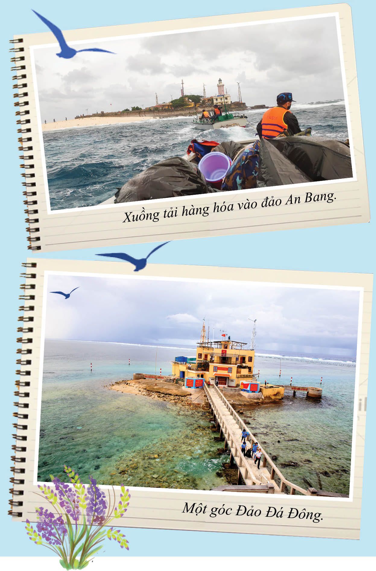 Những ngày sau đó, đoàn công tác tiếp tục hải trình đến các đảo An Bang, Đá Đông, Trường Sa Đông. Cuối năm biển động khiến hải trình trở nên khó khăn hơn; tàu liên tiếp phải neo đậu tìm chỗ tránh trú đảm bảo tuyệt đối an toàn. Để đưa hàng hoá và các thành viên đoàn công tác đến với các đảo, tàu phải tổ chức các chuyến xuồng chuyển tải. Có những điểm đảo xuồng đã hạ để vào nhưng phải quay lại tàu vì sóng quá lớn. Lên đến các đảo chúng tôi thêm cảm phục tinh thần của các cán bộ, chiến sĩ. Khác với những đảo nổi như: Trường Sa Lớn, An Bang, Trường Sa Đông… những đảo chìm như Đá Đông A, B, C điều kiện thời tiết khắc nghiệt, không gian chật chội hơn. Khắc phục khó khăn các cán bộ, chiến sĩ vẫn thể hiện tinh thần lạc quan. Bên cạnh nêu cao cảnh giác, sẵn sàng chiến đấu, cán bộ, chiến sĩ đảo Đá Đông tổ chức nhiều hoạt động vui Xuân, đón Tết. Những phần quà gửi tới các điểm đảo vẹn nguyên hơi ấm từ đất liền động viên các cán bộ, chiến sĩ yên tâm công tác, vững tay súng bảo vệ chủ quyền biển đảo quê hương.