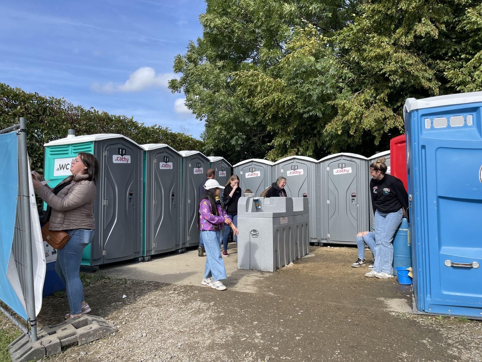 Các cabin tại Hội chợ Nông nghiệp Libramont để thu gom nước tiểu và xử lý thành chất kích thích tăng trưởng cho cây trồng, thay thế phân hóa học. Ảnh: Hương Giang - Phóng viên TTXVN tại Bỉ