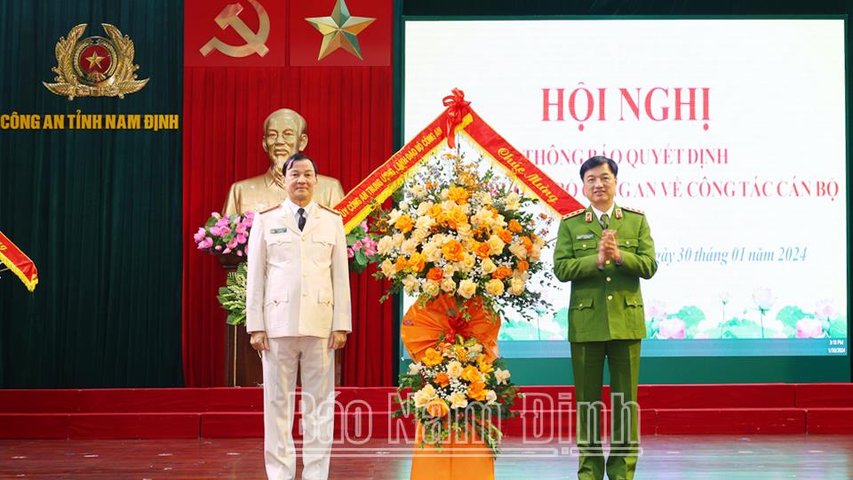 Tại buổi lễ, lãnh đạo Cục Tổ chức cán bộ, Bộ Công an đã thông báo Quyết định của Bộ trưởng Bộ Công an về việc điều động, bổ nhiệm đồng chí Đại tá Trần Minh Tiến, Ủy viên Ban TVTU, Giám đốc Công an tỉnh Nam Định đến nhận công tác và giữ chức vụ Chánh Văn phòng Cơ quan Cảnh sát Điều tra, Bộ Công an. Bộ trưởng Bộ Công an giao đồng chí Đại tá Bùi Quyết Toán, Phó Giám đốc Công an tỉnh phụ trách Công an tỉnh Nam Định trong thời gian kiện toàn Giám đốc Công an tỉnh. Các Quyết định của Bộ trưởng Bộ Công an có hiệu lực từ ngày 1-2-2024.