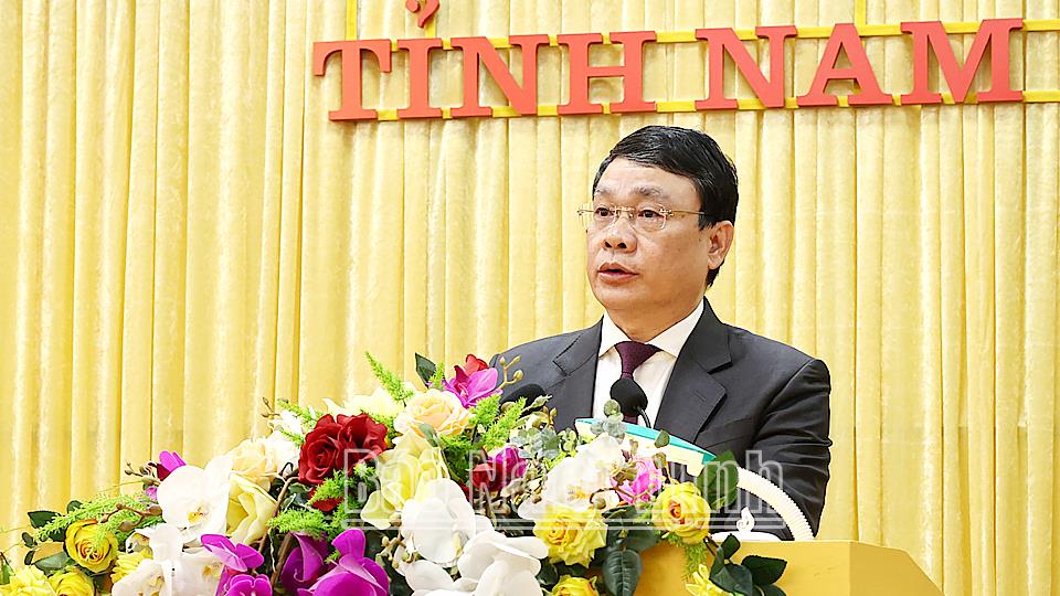 | Đồng chí Bí thư Tỉnh uỷ Đặng Khánh Toàn truyền đạt các nội dung quan trọng tại hội nghị. |