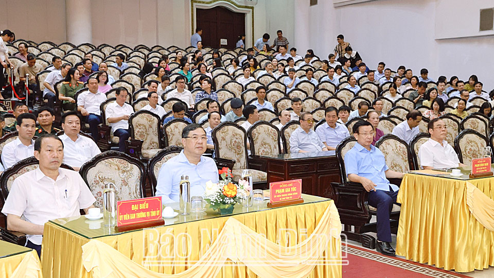 Dự hội nghị tại điểm cầu của tỉnh có đồng chí Phạm Đình Nghị, Phó Bí thư Tỉnh ủy, Chủ tịch UBND tỉnh; các đồng chí nguyên Thường trực Tỉnh ủy, nguyên Ủy viên Ban TVTU, nguyên Thường trực HĐND, lãnh đạo UBND tỉnh, nguyên Trưởng, Phó Đoàn đại biểu Quốc hội tỉnh qua các thời kỳ; các đồng chí Ủy viên Ban TVTU, Ủy viên BCH Đảng bộ tỉnh; lãnh đạo các sở, ban, ngành, MTTQ và các đoàn thể chính trị-xã hội của tỉnh và tương đương; hiệu trưởng các trường đại học, cao đẳng đóng trên địa bàn tỉnh...