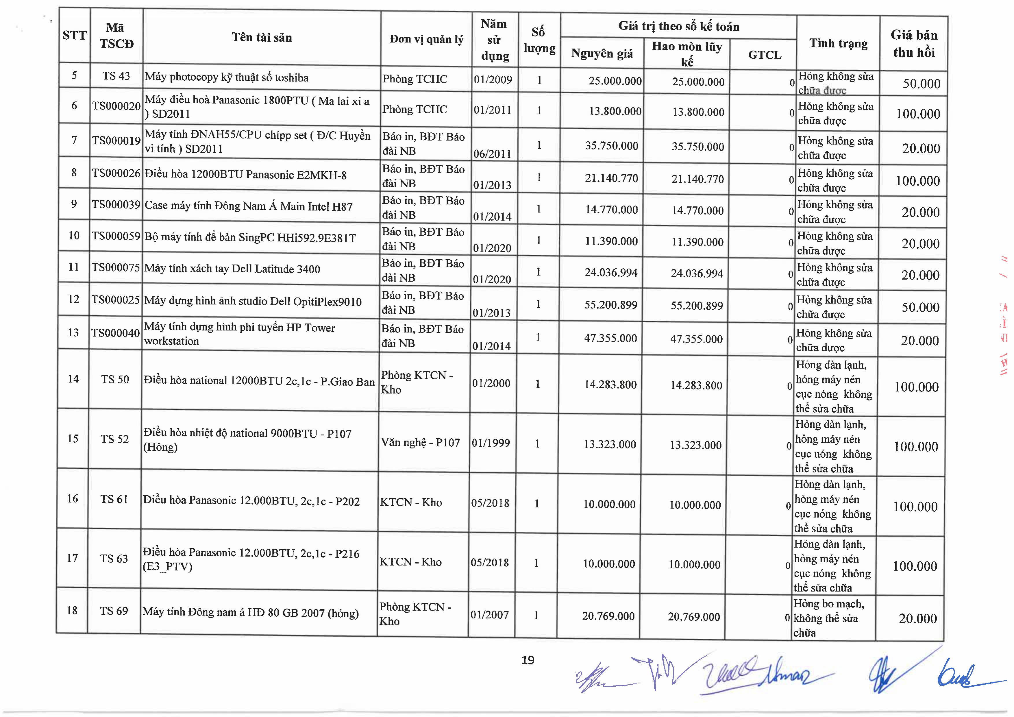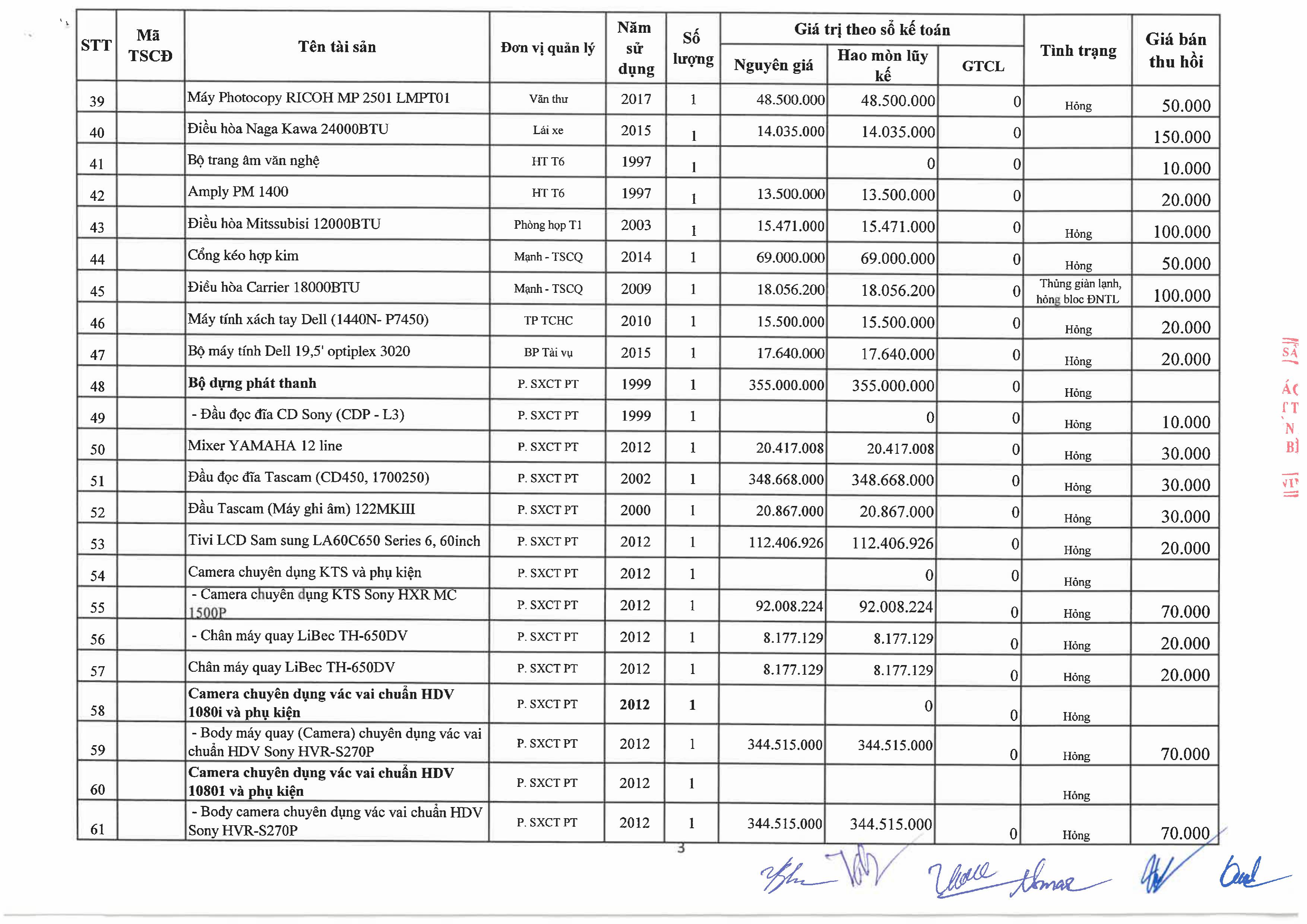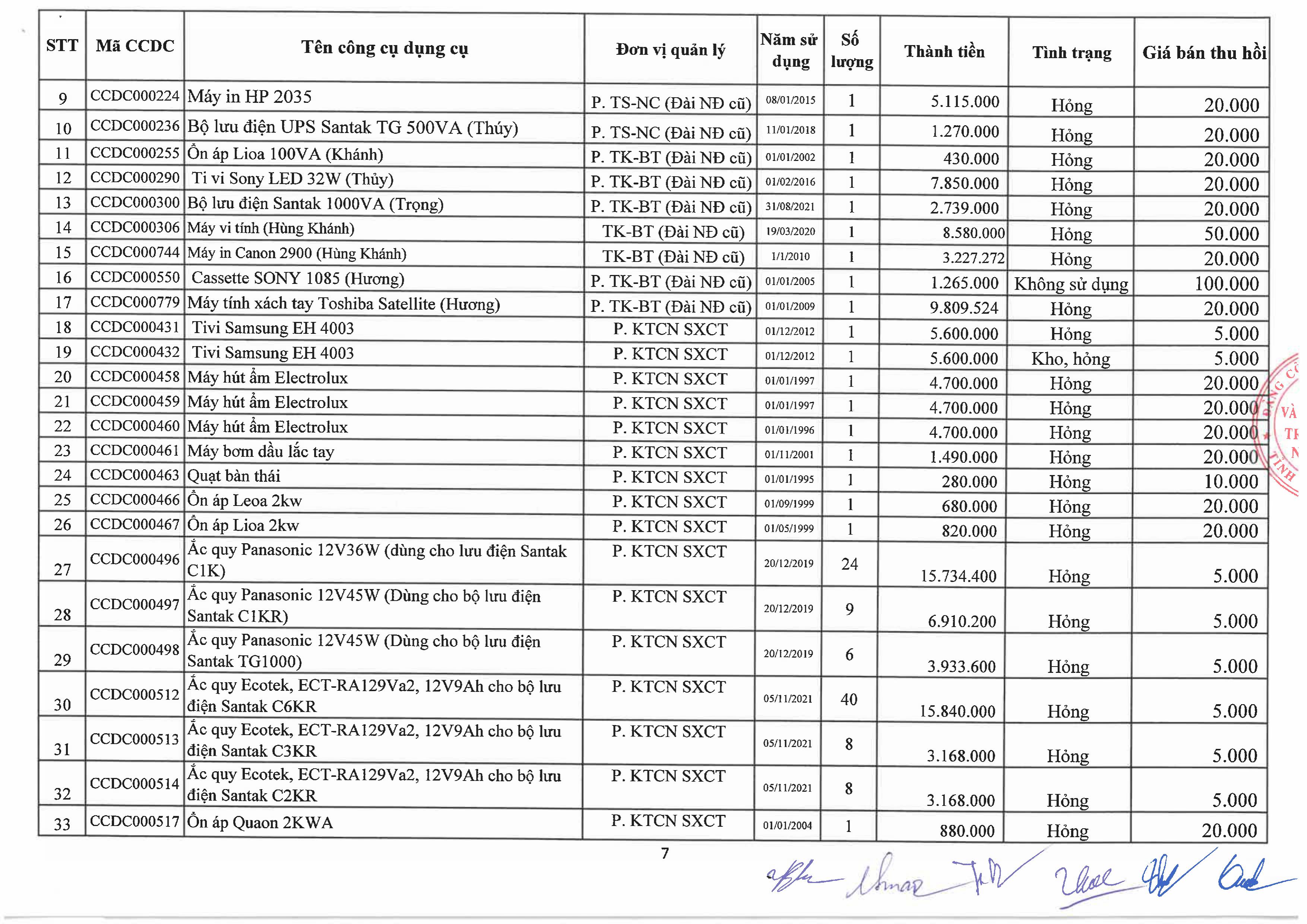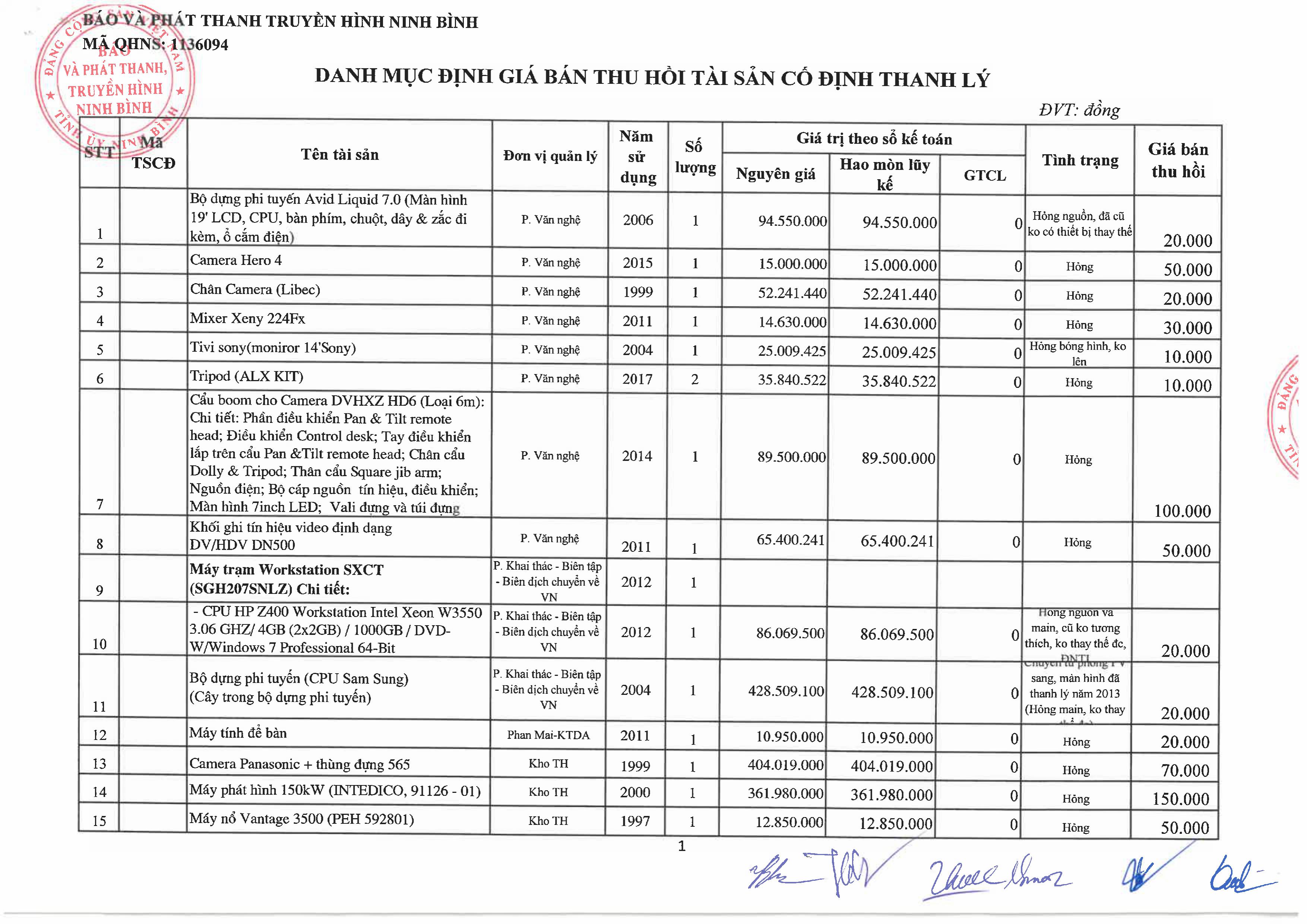 Thông báo về việc bán tài sản cố định, công cụ, dụng cụ thanh lý