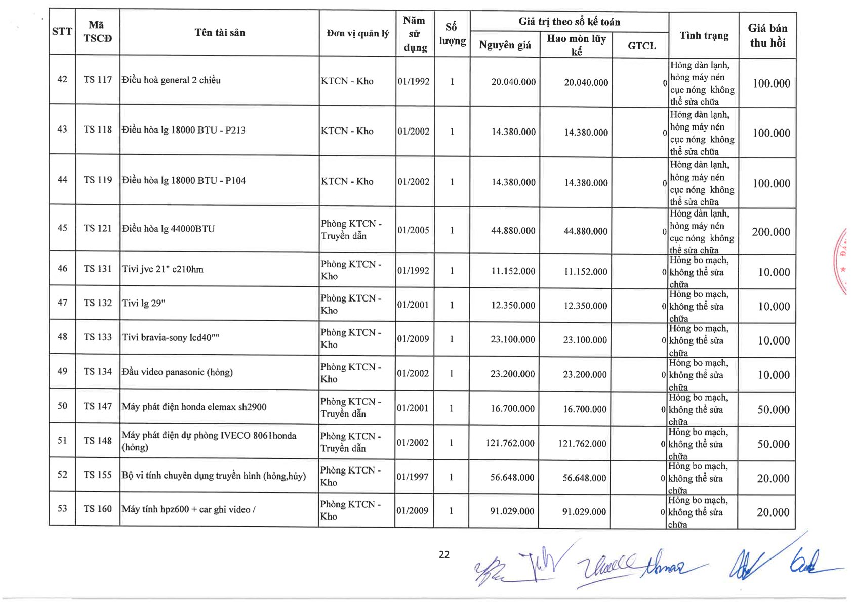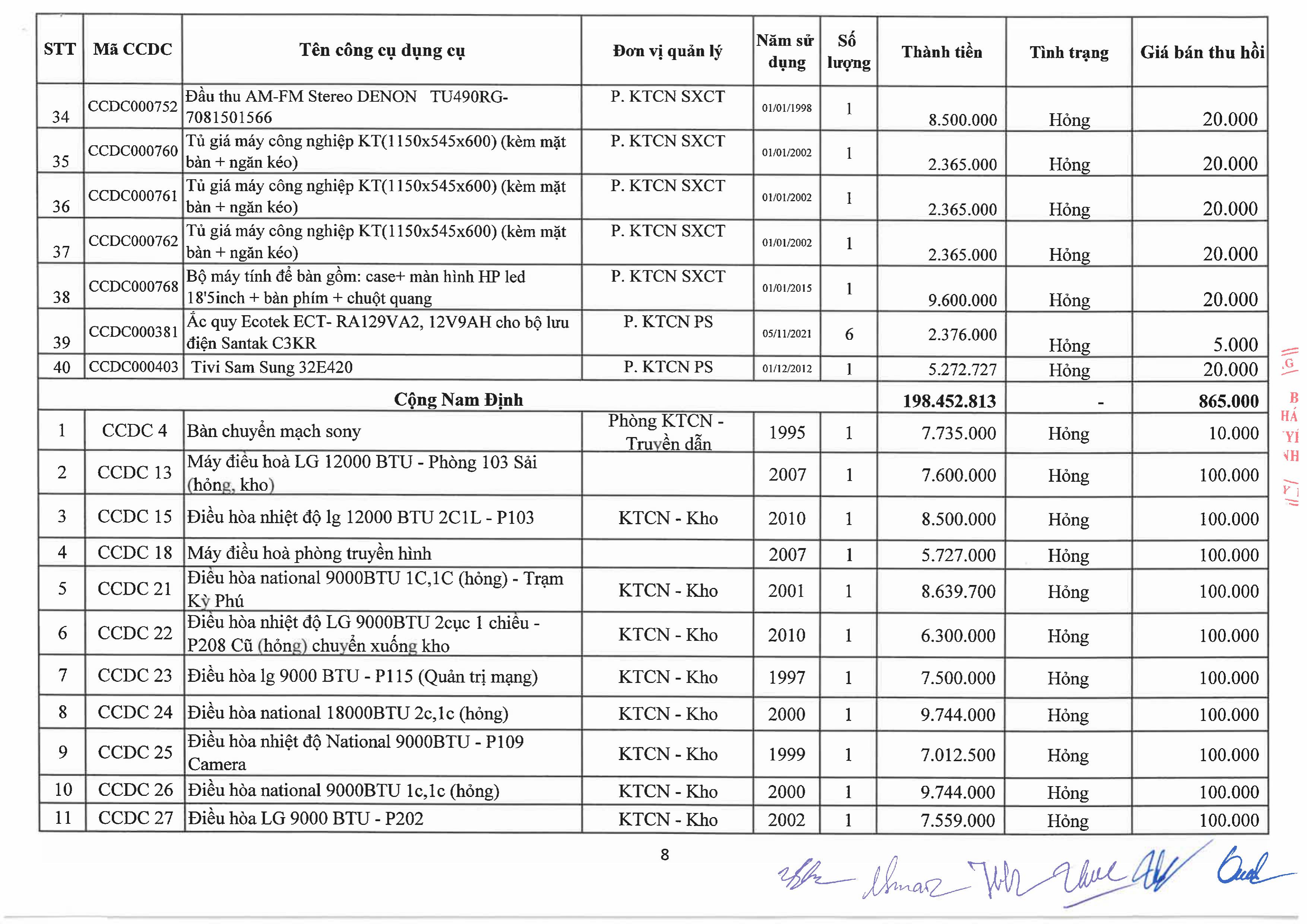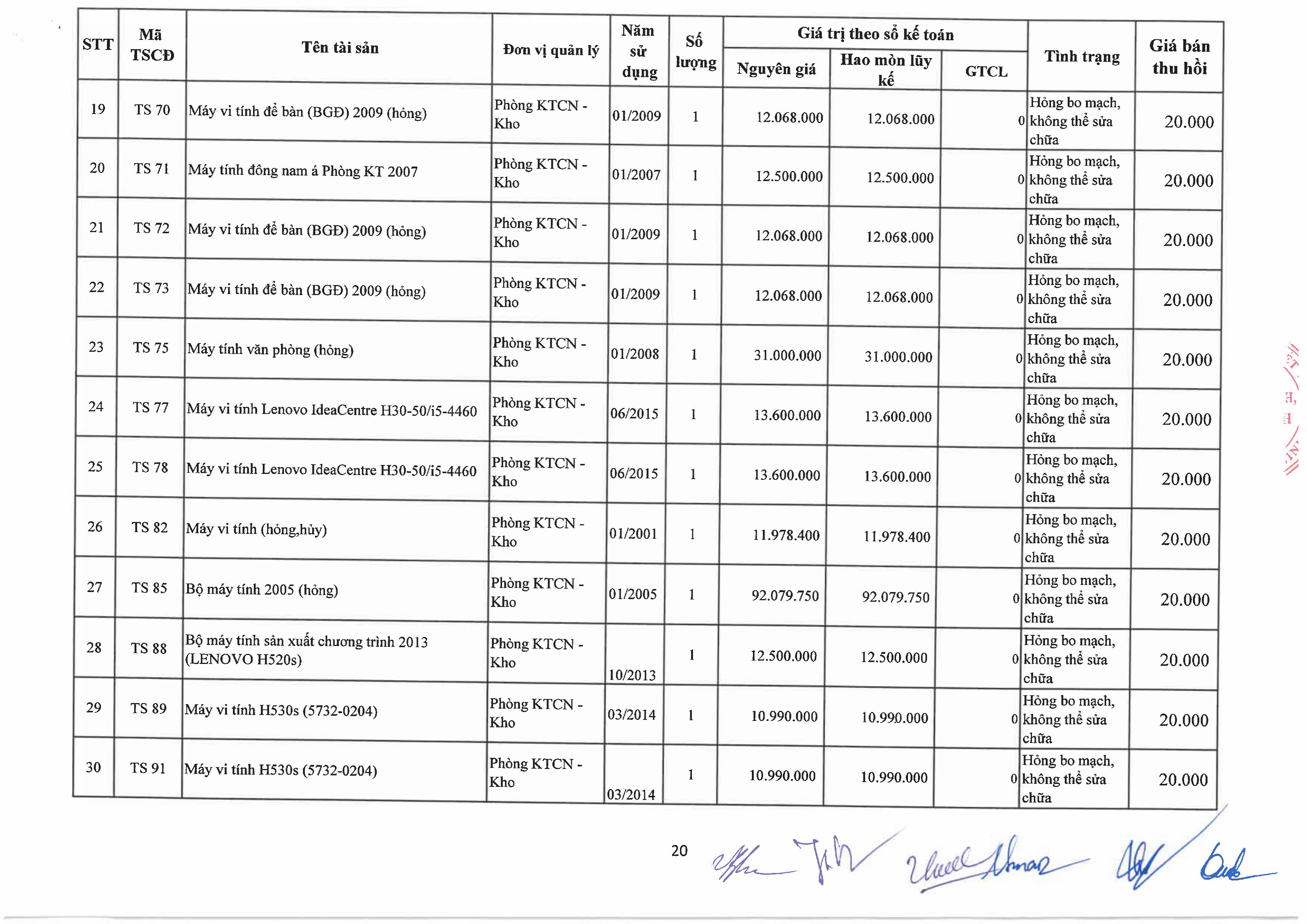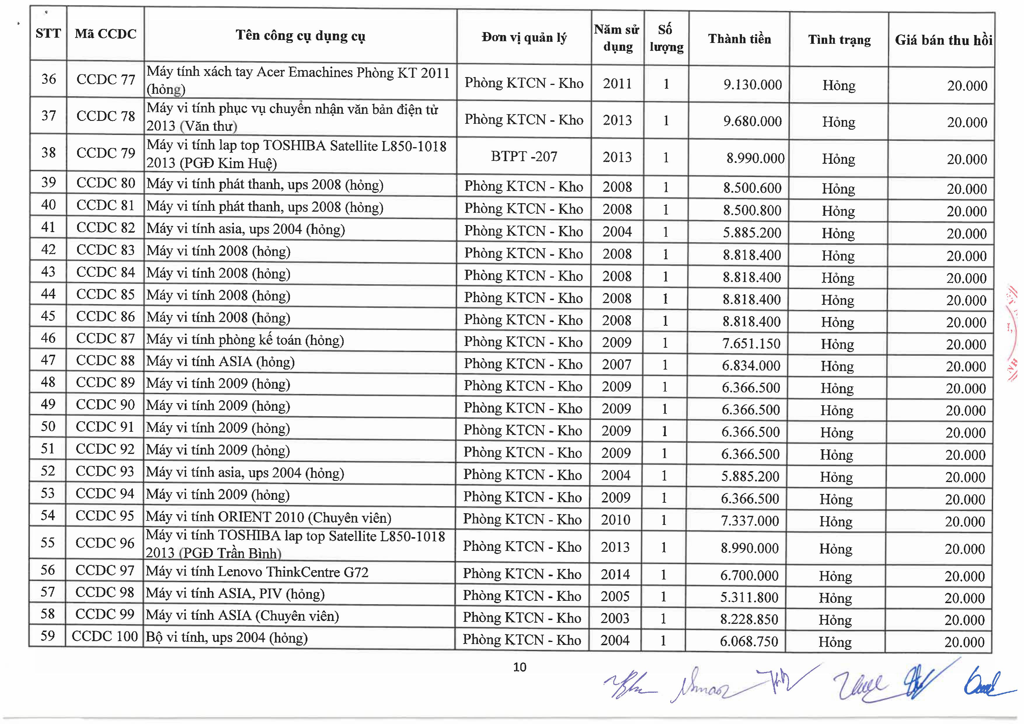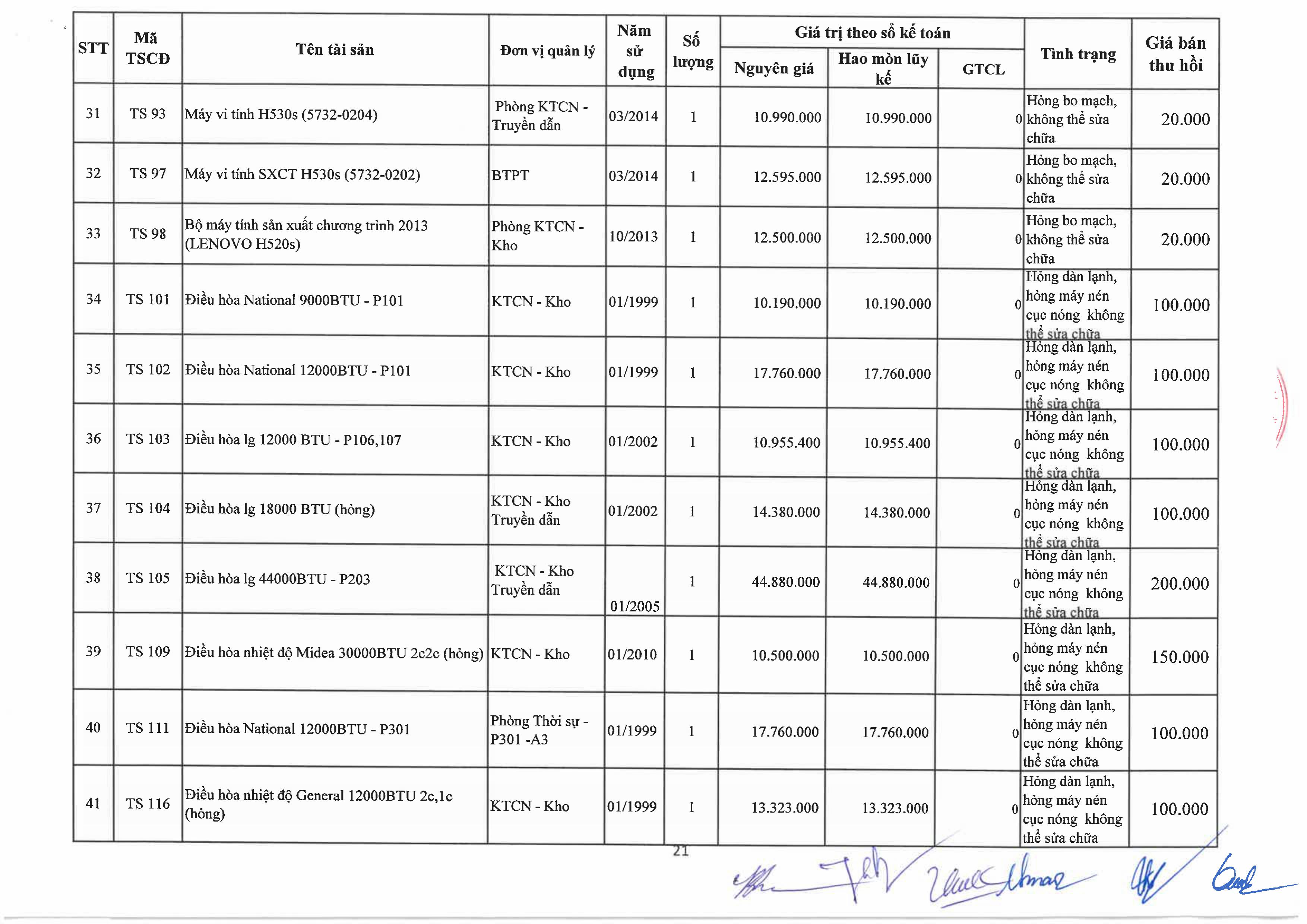 Thông báo về việc bán tài sản cố định, công cụ, dụng cụ thanh lý
