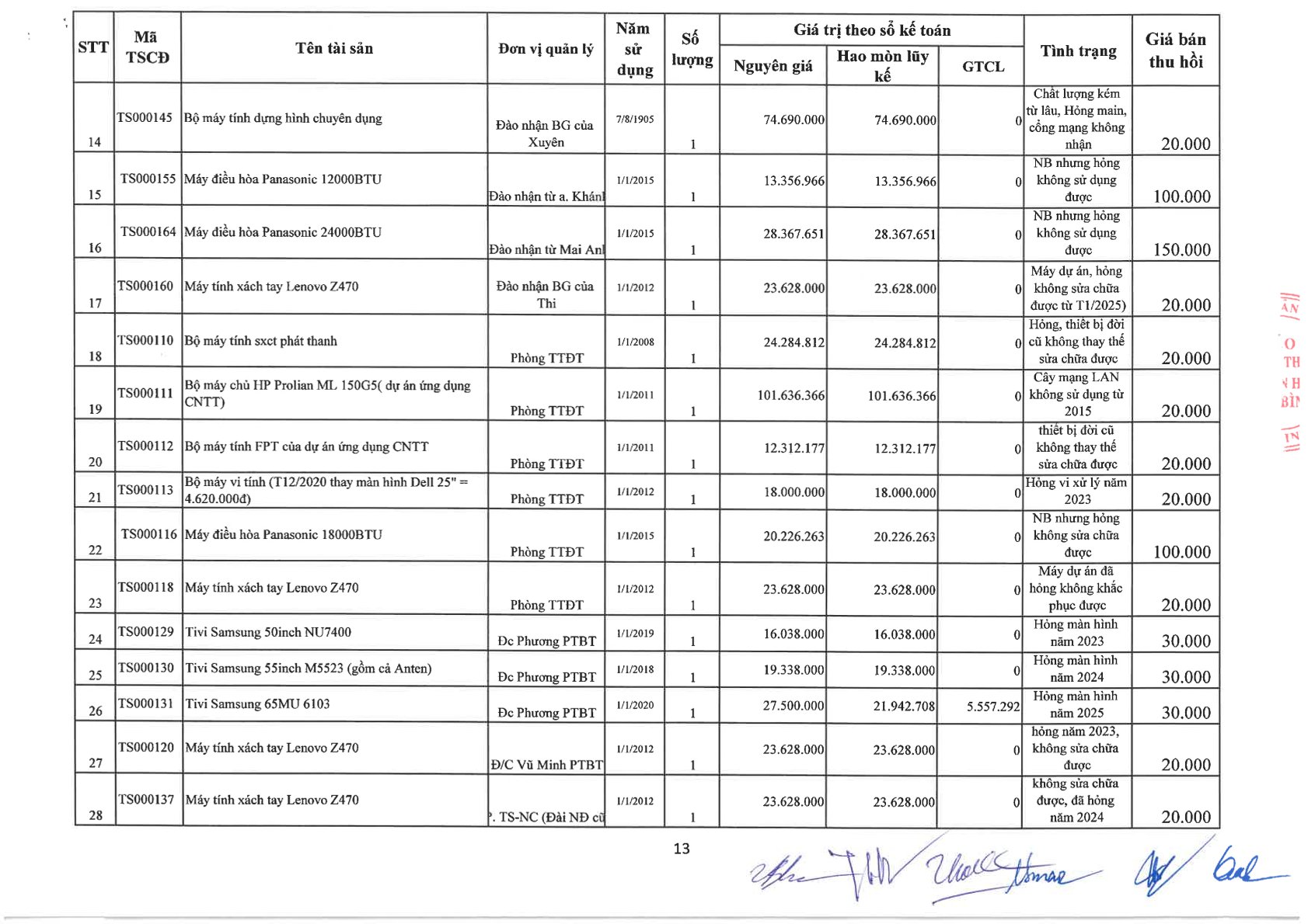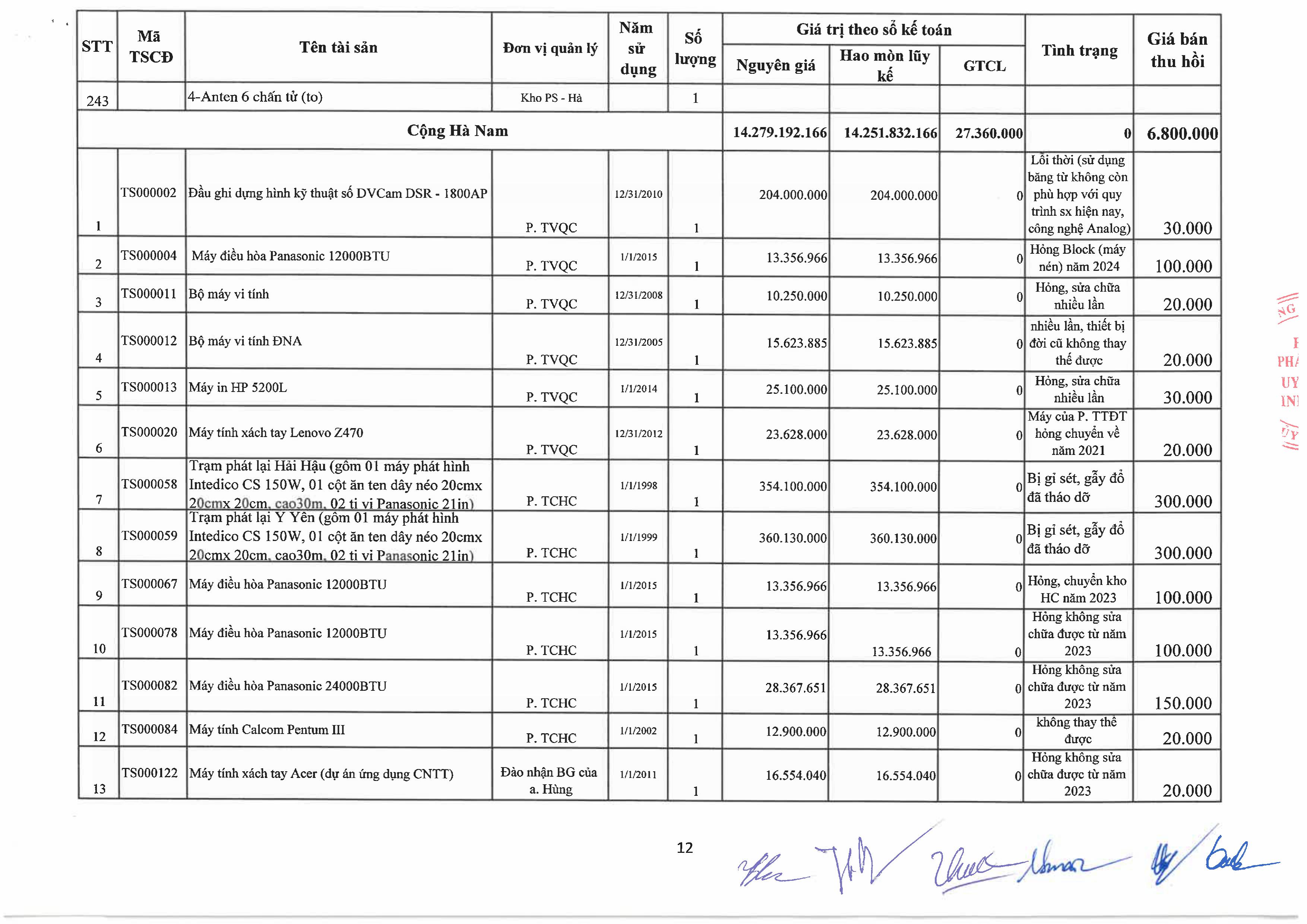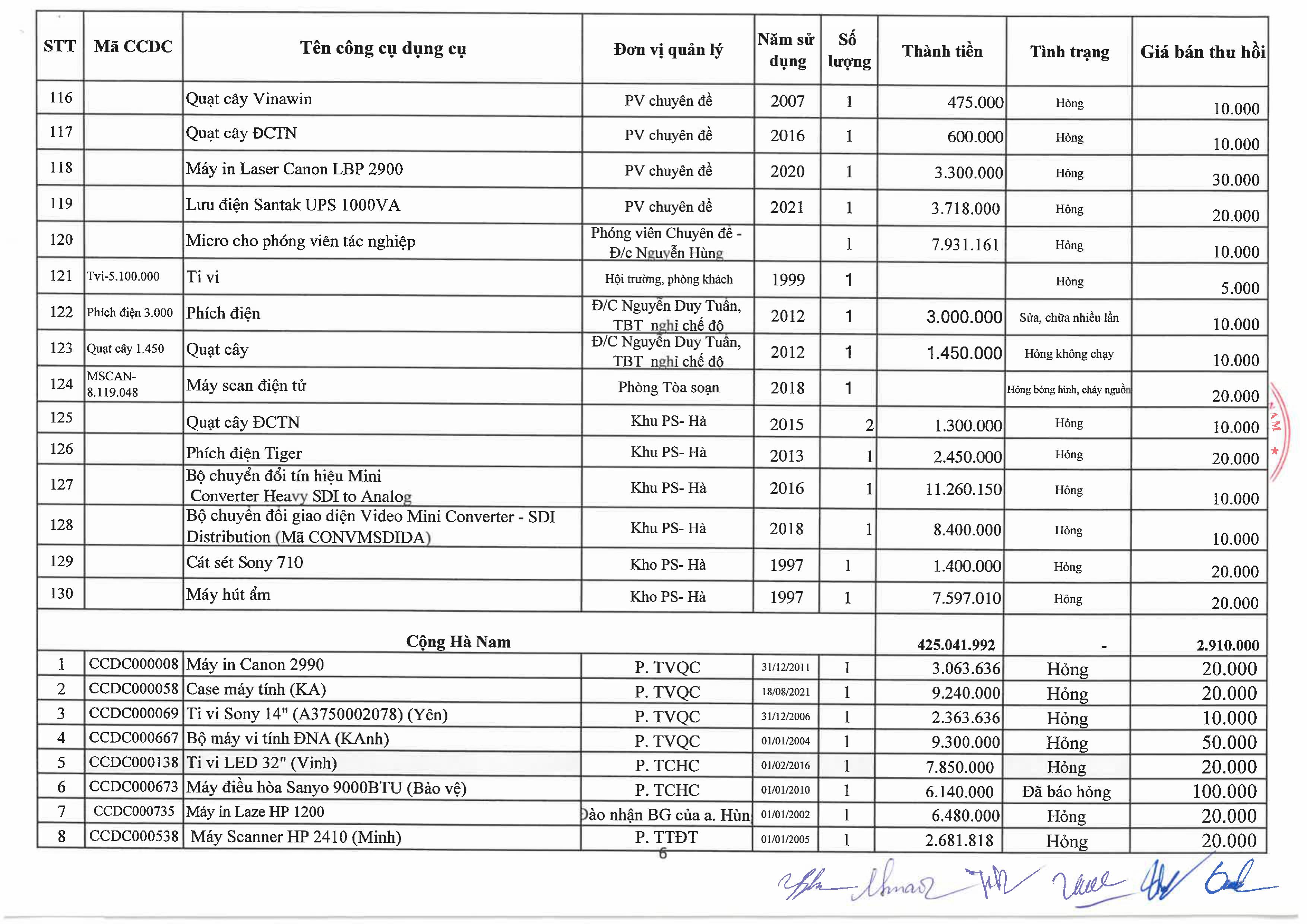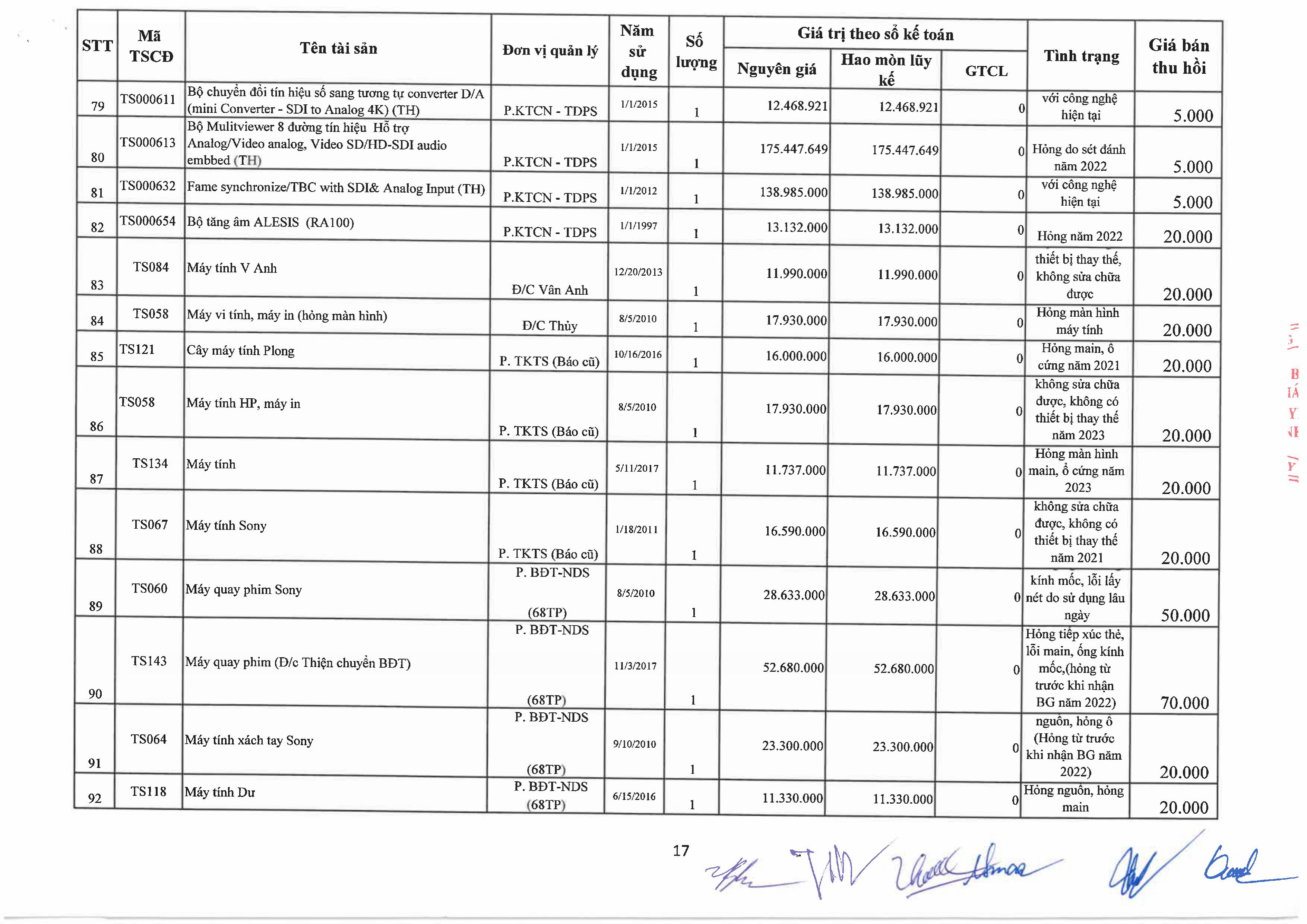 Thông báo về việc bán tài sản cố định, công cụ, dụng cụ thanh lý