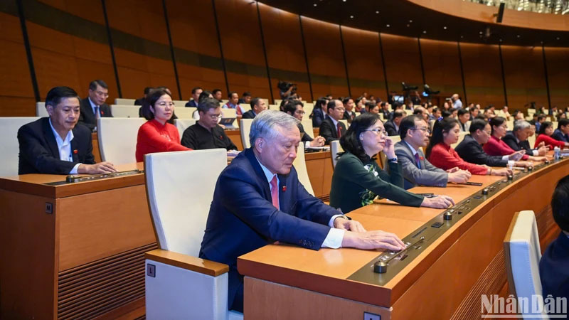 Quốc hội nghe Chủ tịch Quốc hội Trần Thanh Mẫn phát biểu khai mạc Kỳ họp bất thường lần thứ 8, Quốc hội khóa XV; trong đó nhấn mạnh, căn cứ Hiến pháp nước Cộng hòa xã hội chủ nghĩa Việt Nam; căn cứ Luật Tổ chức Quốc hội; Nội quy Kỳ họp Quốc hội và ý kiến của cơ quan có thẩm quyền, Quốc hội khóa XV tổ chức Kỳ họp bất thường lần thứ 8 để xem xét quyết định về công tác nhân sự thuộc thẩm quyền của Quốc hội. Chủ tịch Quốc hội Trần Thanh Mẫn đề nghị các vị đại biểu Quốc hội phát huy dân chủ, nêu cao tinh thần trách nhiệm, xem xét, thảo luận kỹ lưỡng, để việc quyết định công tác nhân sự bảo đảm chặt chẽ, đúng quy định của Đảng, pháp luật của Nhà nước, đạt sự đồng thuận, thống nhất cao.