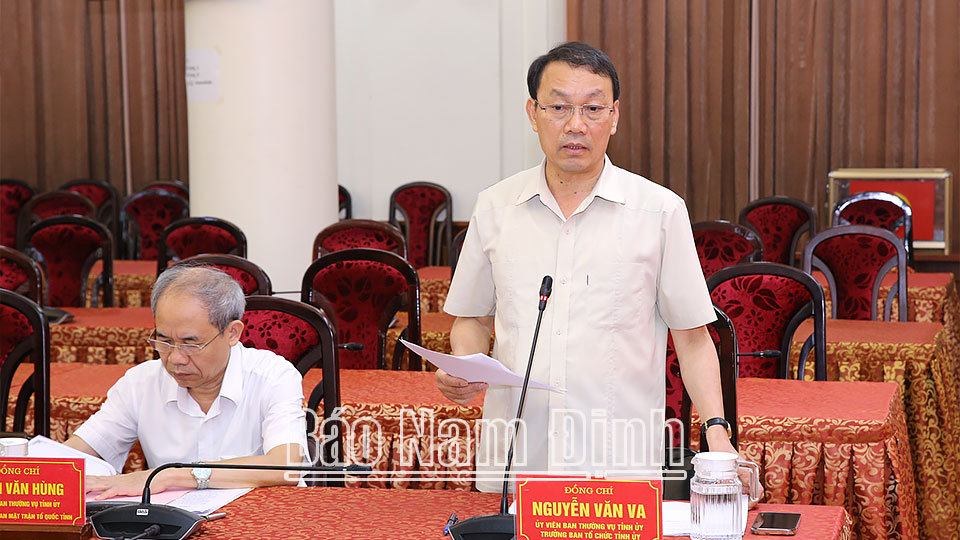| Đồng chí Nguyễn Văn Va, Ủy viên Ban TVTU, Trưởng Ban Tổ chức Tỉnh ủy phát biểu tại hội nghị. |