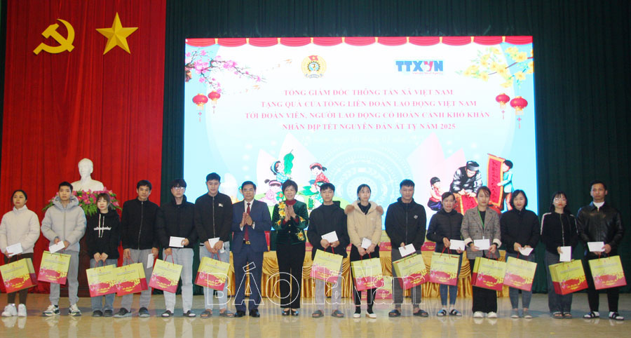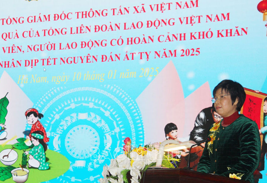 Nhân dịp chuẩn bị đón Tết Nguyên đán Ất Tỵ 2025, chiều 10/1, tại phường Duy Minh, thị xã Duy Tiên, Thông Tấn xã Việt Nam phối hợp Liên đoàn Lao động tỉnh tặng quà của Tổng Liên đoàn Lao động Việt Nam cho đoàn viên, người lao động hoàn cảnh khó khăn đang làm việc tại các khu công nghiệp trên địa bàn tỉnh.