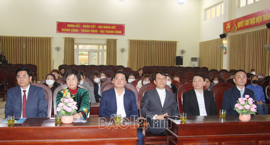 Dự chương trình có bà Vũ Việt Trang, Tổng Giám đốc Thông tấn xã Việt Nam; lãnh đạo Liên đoàn Lao động tỉnh, lãnh đạo thị xã Duy Tiên.