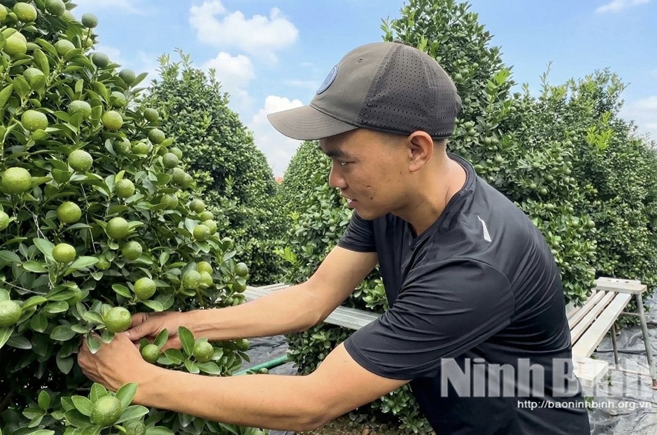 Không chỉ có những bậc cao niên, Vị Khê còn có những người trẻ đầy khát vọng như anh Vũ Công Dũng (sinh năm 1988 ở thôn Vạn Diệp 2). Dù tuổi đời còn trẻ nhưng anh Dũng đã có 15 năm gắn bó với nghề. Sở hữu cơ ngơi 1,2 mẫu vườn với hơn 300 gốc quất đại, anh đang thuê gần chục nhân công lành nghề để "khóa dáng" cho cây.