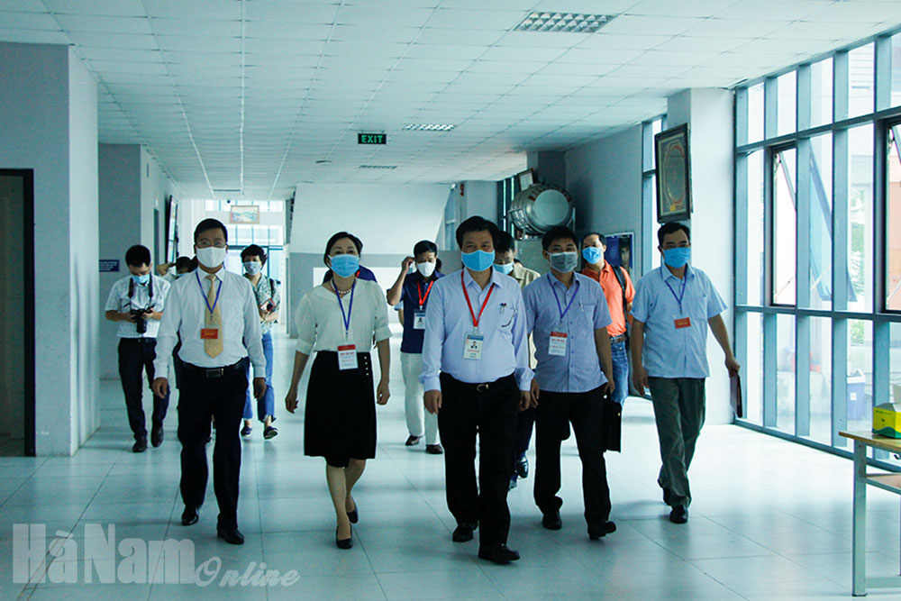 Đón và cùng dự kiểm tra với đoàn công tác của Bộ GD&ĐT có đồng chí Đinh Thị Lụa, Tỉnh ủy viên, Phó Chủ tịch UBND tỉnh, Trưởng ban chỉ đạo Kỳ thi tốt nghiệp THPT năm 2020 tỉnh Hà Nam.