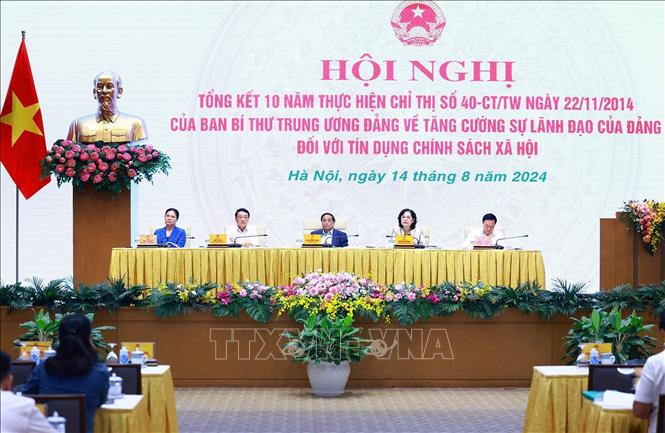 Chiều 14/8, tại Trụ sở Chính phủ, Thủ tướng Chính phủ Phạm Minh Chính chủ trì hội nghị trực tuyến toàn quốc tổng kết 10 năm thực hiện Chỉ thị số 40-CT/TW ngày 22/11/2014 của Ban Bí thư Trung ương Đảng khóa XI về tăng cường sự lãnh đạo của Đảng đối với tín dụng chính sách xã hội (TDCSXH). Dự hội nghị có các đồng chí Ủy viên BCH Trung ương Đảng: Nguyễn Thị Hồng, Thống đốc Ngân hàng Nhà nước Việt Nam, Chủ tịch Hội đồng Quản trị Ngân hàng CSXH Việt Nam; Hầu A Lềnh, Bộ trưởng, Chủ nhiệm Ủy ban Dân tộc; Hà Thị Nga, Chủ tịch Hội Liên hiệp Phụ nữ Việt Nam; Lương Quốc Đoàn, Chủ tịch Hội Nông dân Việt Nam; lãnh đạo các bộ, ngành, cơ quan Trung ương; lãnh đạo các tỉnh, thành phố trực thuộc Trung ương.