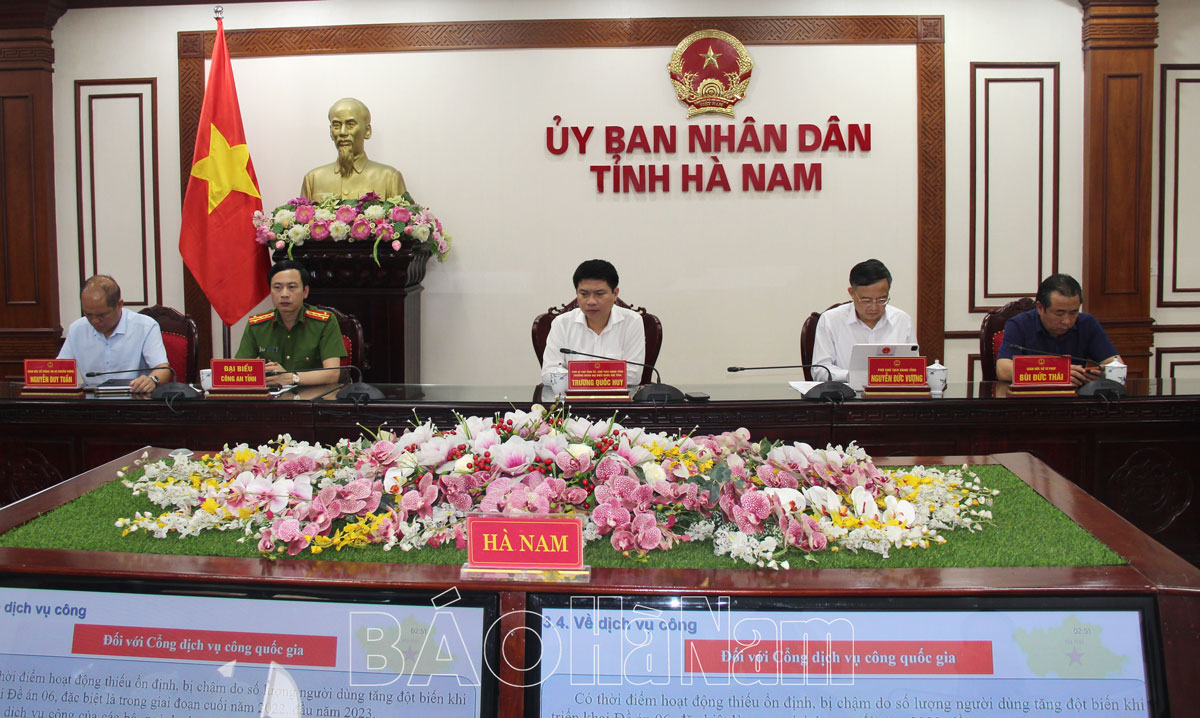 Tại điểm cầu UBND tỉnh Hà Nam, đồng chí Trương Quốc Huy, Phó Bí thư Tỉnh ủy, Chủ tịch UBND tỉnh, Trưởng đoàn ĐBQH tỉnh, Trưởng Ban chỉ đạo (BCĐ) CĐS tỉnh, Tổ trưởng Tổ công tác Đề án 06 tỉnh chủ trì hội nghị. Cùng dự có đồng chí Nguyễn Đức Vượng, Tỉnh ủy viên, Phó Chủ tịch UBND tỉnh, Phó trưởng Ban Thường trực BCĐ CĐS tỉnh, Tổ phó Tổ công tác Đề án 06 tỉnh; lãnh đạo các sở, ban, ngành, thành viên BCĐ CĐS tỉnh và Tổ công tác triển khai Đề án 06 tỉnh. Hội nghị được truyền trực tuyến tới điểm cầu các huyện, thị xã, thành phố trong tỉnh.