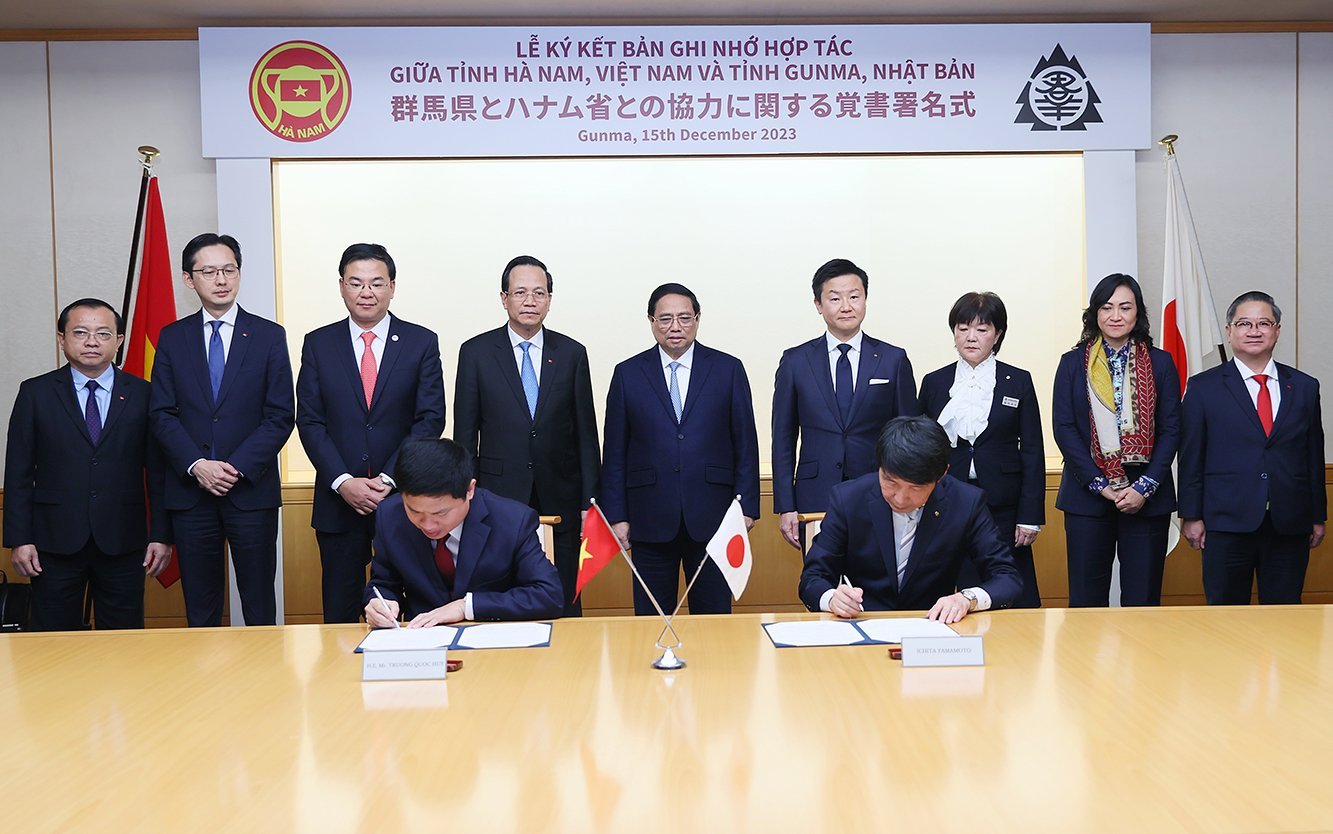 Thủ tướng Chính phủ Phạm Minh Chính chứng kiến lễ ký kết bản ghi nhớ hợp tác giữa tỉnh Hà Nam và tỉnh Gunma, Nhật Bản