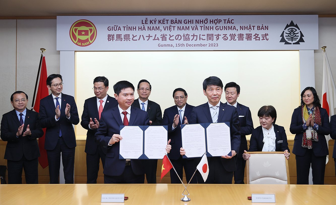 Dưới sự chứng kiến của Thủ tướng Chính phủ Phạm Minh Chính cùng các thành viên đoàn công tác của Chính phủ, đồng chí Trương Quốc Huy, Phó Bí thư Tỉnh ủy, Chủ tịch UBND tỉnh,Trưởng đoàn Đại biểu Quốc hội tỉnh Hà Nam và Thống đốc tỉnh Gunma - Ngài Yamamoto Ichita đã ký kết bản ghi nhớ hợp tác về việc 2 tỉnh cùng nỗ lực hợp tác trong việc hợp tác thúc đẩy thương mại và đầu tư; Hợp tác đào tạo nguồn nhân lực có trình độ cao.