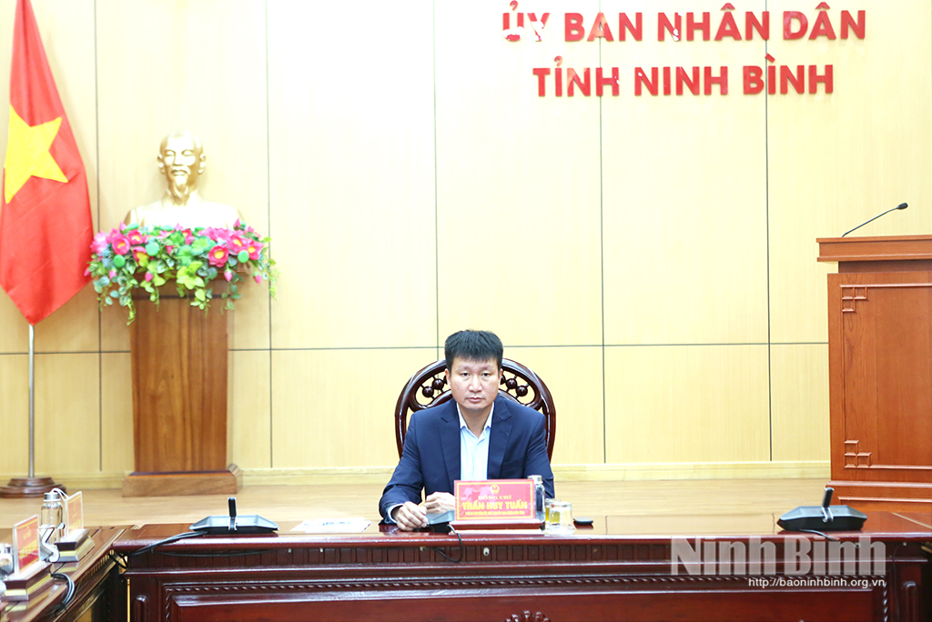 Đồng chí Trần Huy Tuấn, Phó Bí thư Tỉnh ủy, Chủ tịch UBND tỉnh tham dự Hội nghị trực tuyến tại điểm cầu tỉnh Ninh Bình.