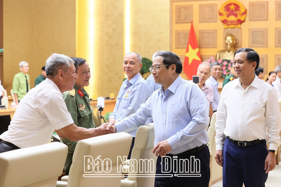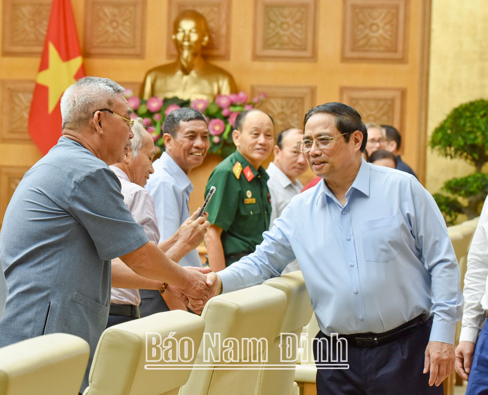Nhân kỷ niệm 76 năm Ngày Thương binh - Liệt sĩ (27-7-1947 - 27-7-2023), sáng 6-7, tại trụ sở Chính phủ, đồng chí Phạm Minh Chính, Ủy viên Bộ Chính trị, Thủ tướng Chính phủ gặp mặt Đoàn đại biểu người có công với cách mạng, thân nhân liệt sĩ tiêu biểu tỉnh Nam Định. Dự buổi gặp mặt có lãnh đạo Bộ Lao động - Thương binh và Xã hội, Văn phòng Chính phủ.