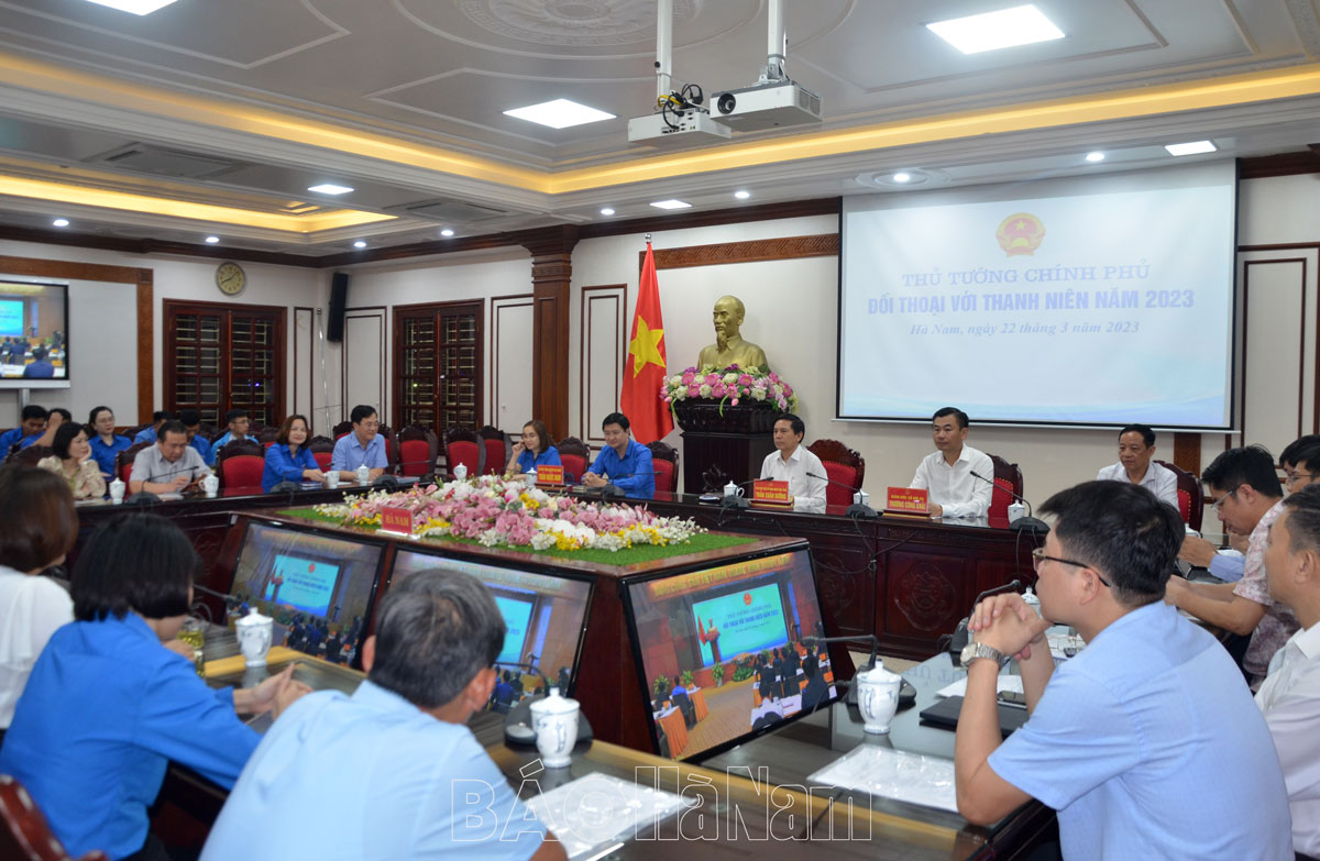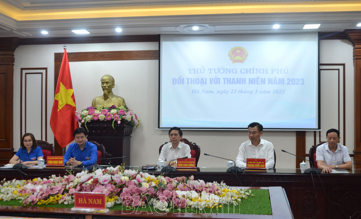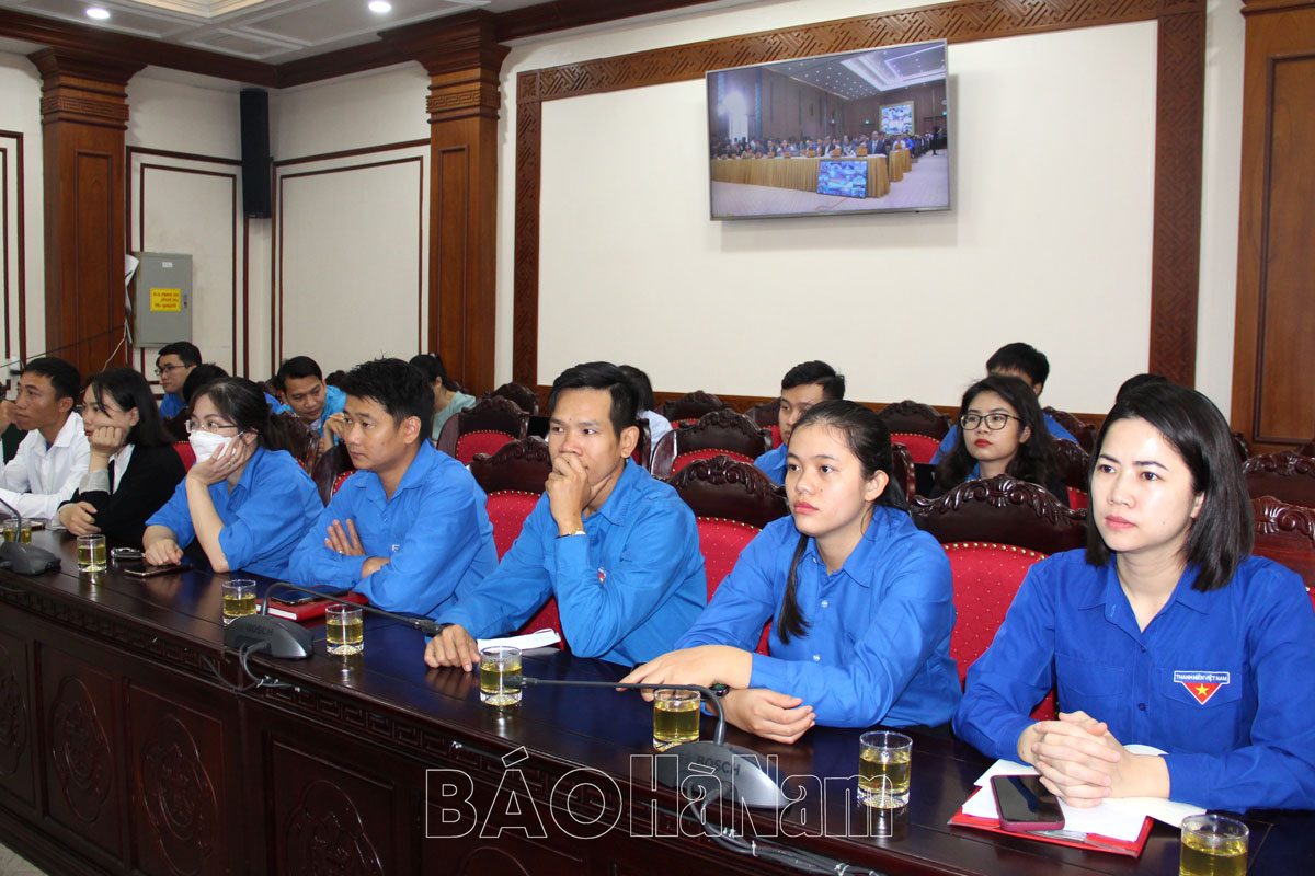 Tại điểm cầu Hà Nam có các đồng chí: Trần Xuân Dưỡng, Tỉnh ủy viên, Phó Chủ tịch UBND tỉnh; Trần Ngọc Nam, Tỉnh ủy viên, Bí thư Tỉnh đoàn, Chủ tịch Hội LHTN tỉnh; lãnh đạo các sở, ngành, Văn phòng UBND tỉnh; Thường trực Tỉnh đoàn, Hội LHTN tỉnh và 50 đoàn viên, thanh niên tiêu biểu.