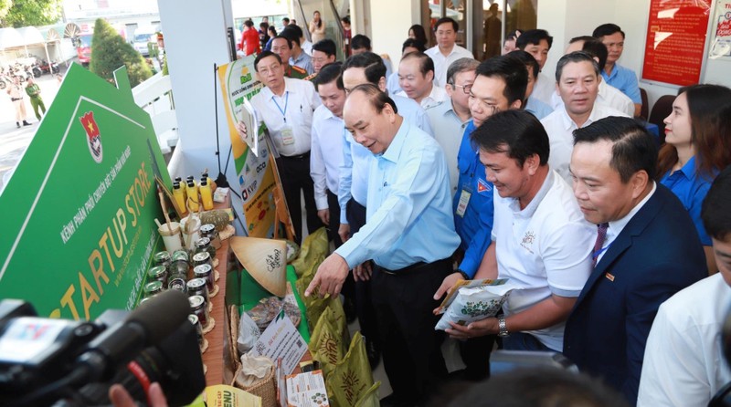 Thủ tướng Nguyễn Xuân Phúc xem xét một số loại nông sản tiêu biểu.