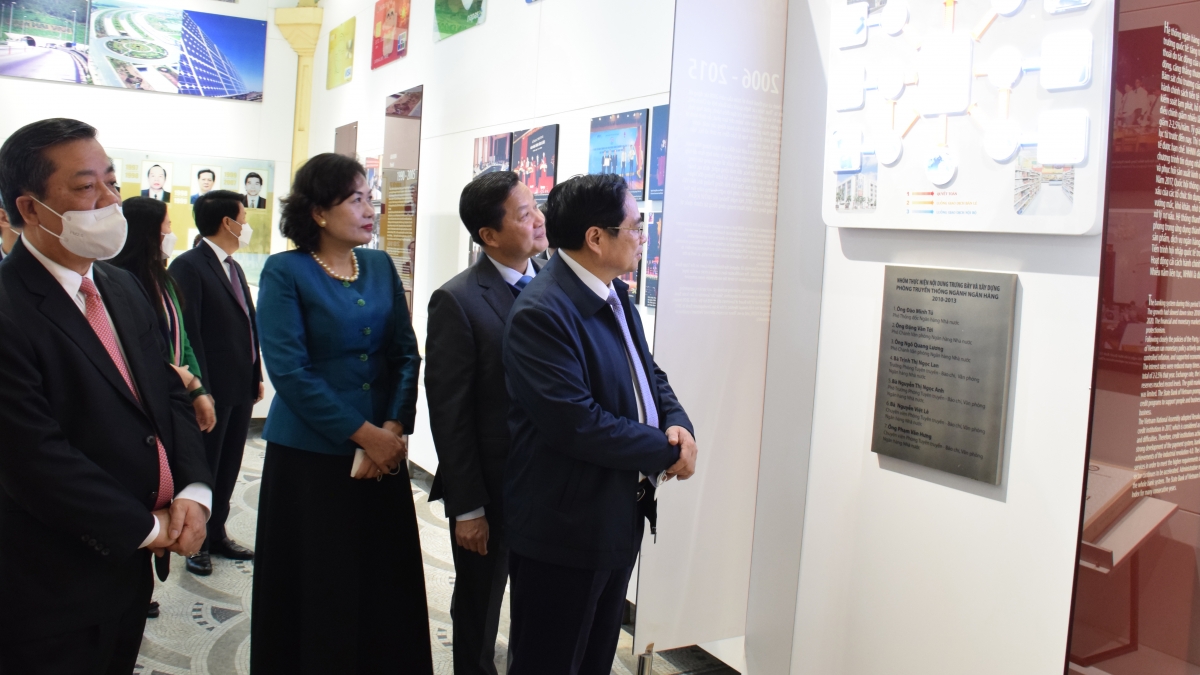 Thủ tướng thăm phòng truyền thống ngành ngân hàng.