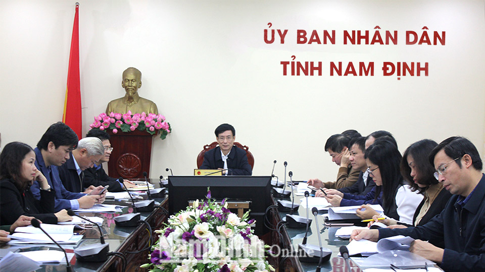 | Đồng chí Phạm Đình Nghị, Phó Bí thư Tỉnh ủy, Chủ tịch UBND tỉnh, Trưởng Ban Chỉ đạo xây dựng chính quyền điện tử tỉnh và các ngành thành viên Ban Chỉ đạo dự hội nghị tại điểm cầu Nam Định. Ảnh: Thanh Thúy