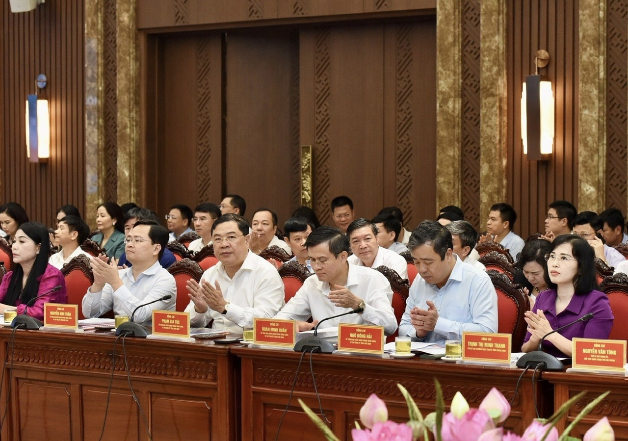 | Đồng chí Phạm Gia Túc, Ủy viên BCH Trung ương Đảng, Bí thư Tỉnh ủy Nam Định và đại diện các địa phương vùng đồng bằng sông Hồng tham dự Hội nghị. |