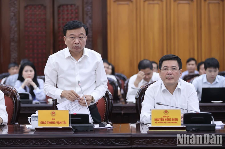 | Lãnh đạo Bộ Giao thông vận tải báo cáo tại cuộc họp. |