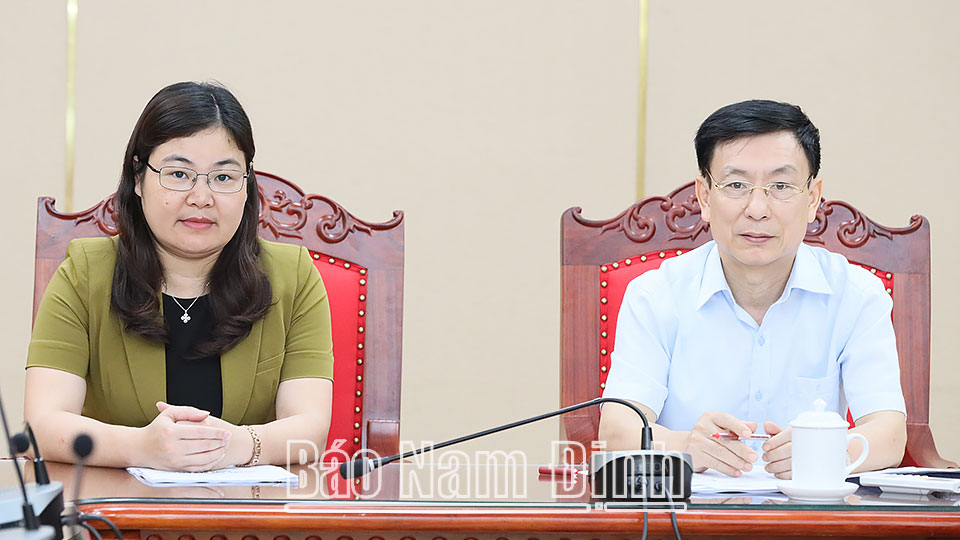 Tham dự phiên họp tại đầu cầu tỉnh Nam Định có các đồng chí: Phạm Đình Nghị, Phó Bí thư Tỉnh ủy, Chủ tịch UBND tỉnh; Hà Lan Anh, TUV, Phó Chủ tịch UBND tỉnh; lãnh đạo các sở, ban, ngành, các huyện, thành phố và các cơ quan, đơn vị liên quan.