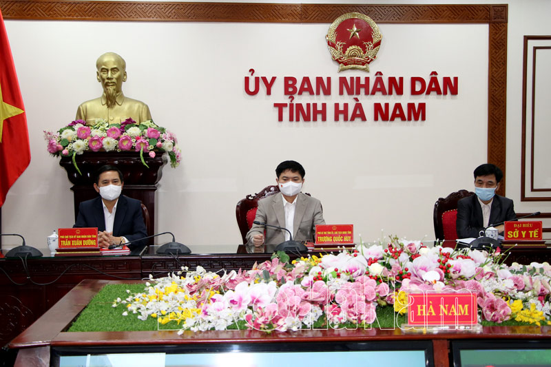 Dự và chủ trì hội nghị tại điểm cầu Hà Nam có đồng chí Trương Quốc Huy, Phó Bí thư Tỉnh uỷ, Chủ tịch UBND tỉnh, Trưởng đoàn Đại biểu Quốc hội tỉnh, Phó BCĐ, Chỉ huy trưởng Trung tâm Chỉ huy phòng, chống dịch Covid-19 tỉnh. Cùng dự có đồng chí Trần Xuân Dưỡng, TUV, Phó Chủ tịch UBND tỉnh, lãnh đạo Sở Y tế, đại diện tiêu biểu đoàn cán bộ, nhân viên y tế tham gia chống dịch tại thành phố Hồ Chí Minh.