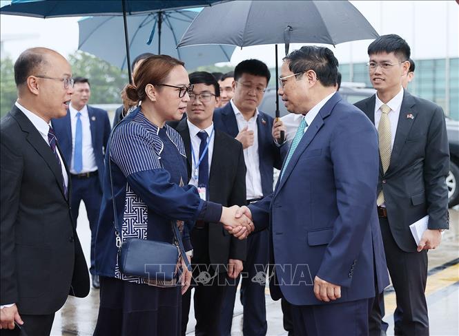 | Lễ tiễn Thủ tướng Phạm Minh Chính lên đường tham dự Hội nghị cấp cao ASEAN lần thứ 43, tại sân bay quốc tế Nội Bài, Hà Nội, sáng 4/9. Ảnh: Dương Giang/TTXVN |