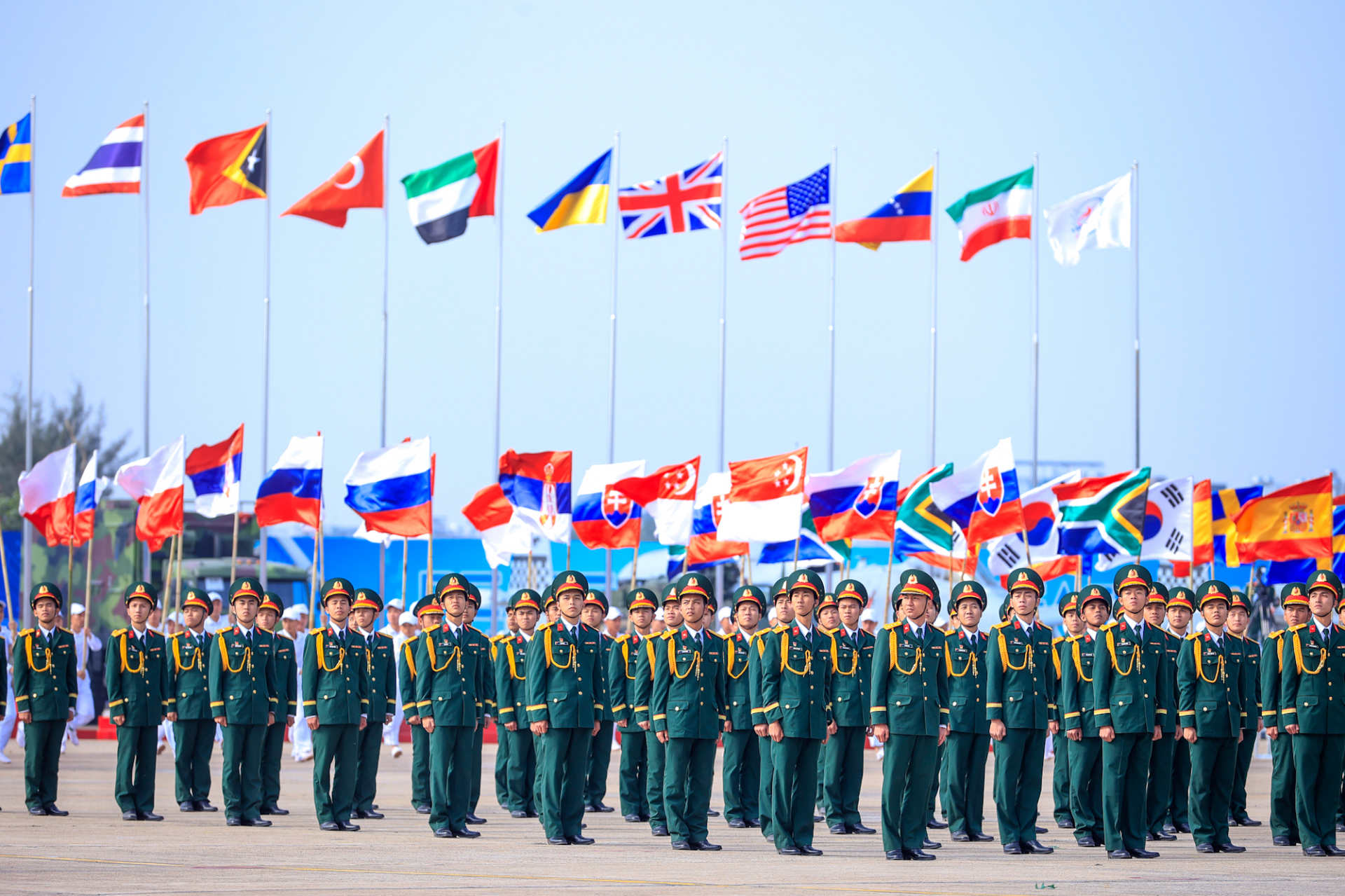 Cùng dự có Ủy viên Bộ Chính trị, Phó Thủ tướng Thường trực Chính phủ Nguyễn Hòa Bình; Ủy viên Bộ Chính trị, Bộ trưởng Bộ Quốc phòng, Đại tướng Phan Văn Giang; Ủy viên Bộ Chính trị, Bộ trưởng Bộ Công an, Đại tướng Lương Tam Quang; Bí thư Trung ương Đảng, Chủ nhiệm Tổng cục Chính trị Quân đội nhân dân Việt Nam Trịnh Văn Quyết; Phó Thủ tướng Chính phủ, Bộ trưởng Bộ Ngoại giao Bùi Thanh Sơn; Phó Chủ tịch Quốc hội Trần Quang Phương; Tổng Tham mưu trưởng Quân đội nhân dân Việt Nam, Đại tướng Nguyễn Tân Cương; Bộ trưởng Quốc phòng các nước Lào, Campuchia, Cuba, Belarus, Thái Lan, Brunei, Mông Cổ; lãnh đạo các ban, bộ, ngành, cơ quan Trung ương và địa phương; đại diện các đại sứ quán, tổ chức quốc tế tại Việt Nam, lãnh đạo Bộ Quốc phòng, chỉ huy quân đội các nước.